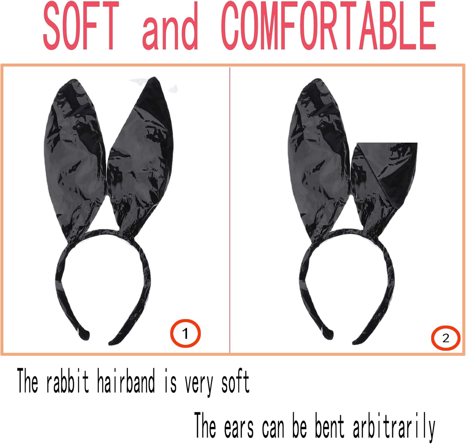 2 Set Orecchie da Coniglio, Fascia per Capelli con Orecchie da Coniglio, Fascia per Capelli in Costume da Coniglio, Sexy e Carina per Feste in Costume Cosplay Carnevale (Nero, Bianco)