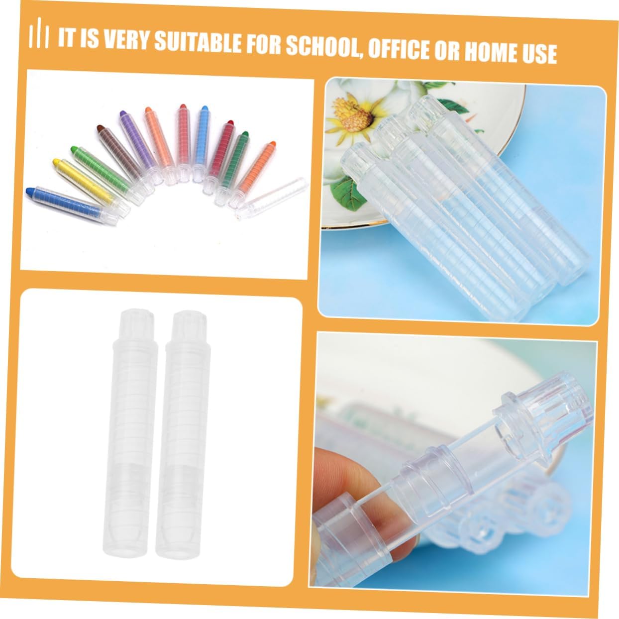 Portagesso in plastica: se sei un insegnante o il tuo partner è un insegnante, questo portagesso è un molto necessario per te o il tuo partner, portagesso da ufficio Clip per gesso portatile: abbastanza porta gesso, quindi questi porta gesso possono portare molta comodità alla tua vita, materiale scolastico Porta-gesso: facile da usare e da utilizzare, il che ti offre praticità, è comodo da tenere e scorrevole per scrivere, porta-gesso Copertura per gesso: questo porta gesso può mantenere le tue pulite e impedire che il gesso rompa, custodia per gesso per insegnante Porta gesso solubile in acqua: è molto adatto per la scuola, l'ufficio o l'uso domestico, è un buon assistente quando scrivi sulla lavagna, morsetto per gesso per insegnanti