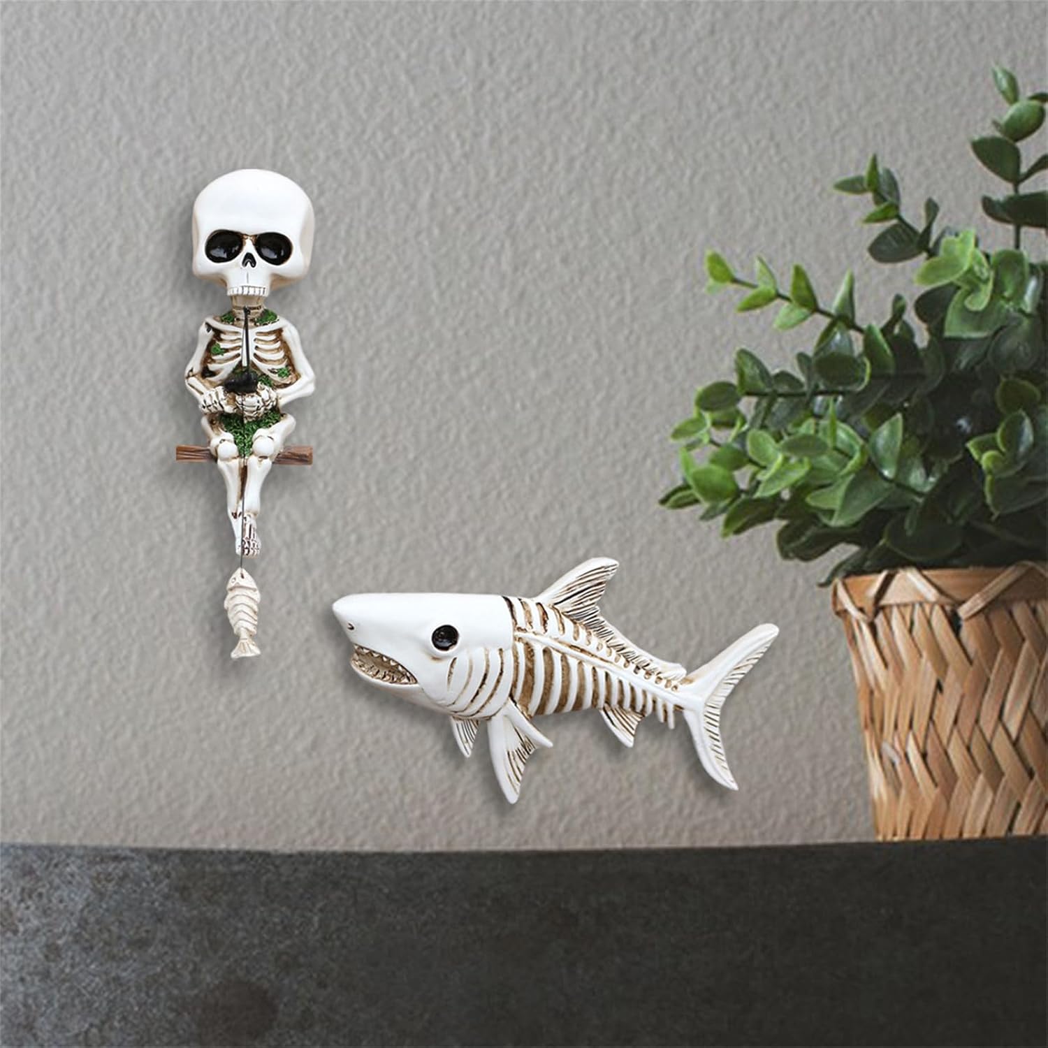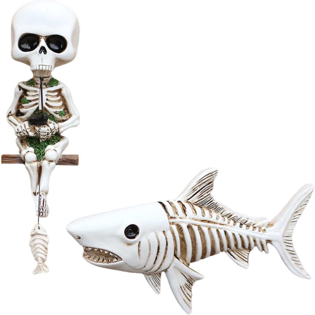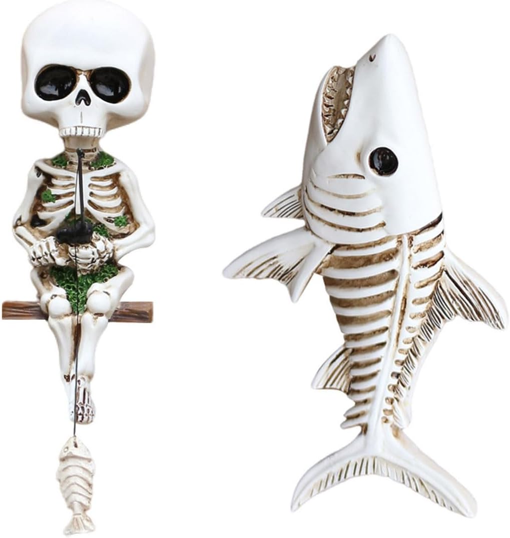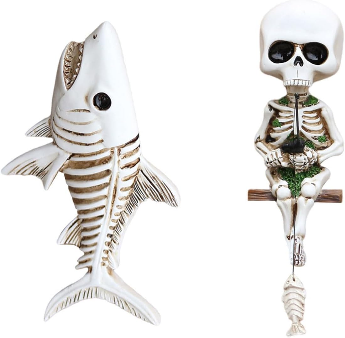 Perfetto per gli appassionati di decorazioni per la casa, collezionisti di vita marina e Halloween che apprezzano sculture artistiche non convenzionali con un tocco di umorismo horror Trasforma la tua libreria del soggiorno, il paesaggio di acquari salati o la tua configurazione per feste di Halloween con queste conversazioni che combinano l'estetica inquietante con temi di avventura dell'acquario Ogni set di pesci scheletro e scheletro accuratamente modellato cattura i movimenti dinamici e offre versatili possibilità decorative, dagli accenti di spazio alle opzioni regalo uniche per gli amanti dell'arte scura Queste statuette in resina leggere ma robuste con intricato design artigianale e montaggio a parete servono a duplici scopi come accattivanti pezzi artistici da parete o decorazioni per serbatoi sott'acqua Questa scultura a forma di pesce teschio in 2 pezzi combina un tema fantasy scuro con un fascino stravagante, realizzato in resina durabilità per decorazioni domestiche di lunga durata o decorazioni creative per acquari