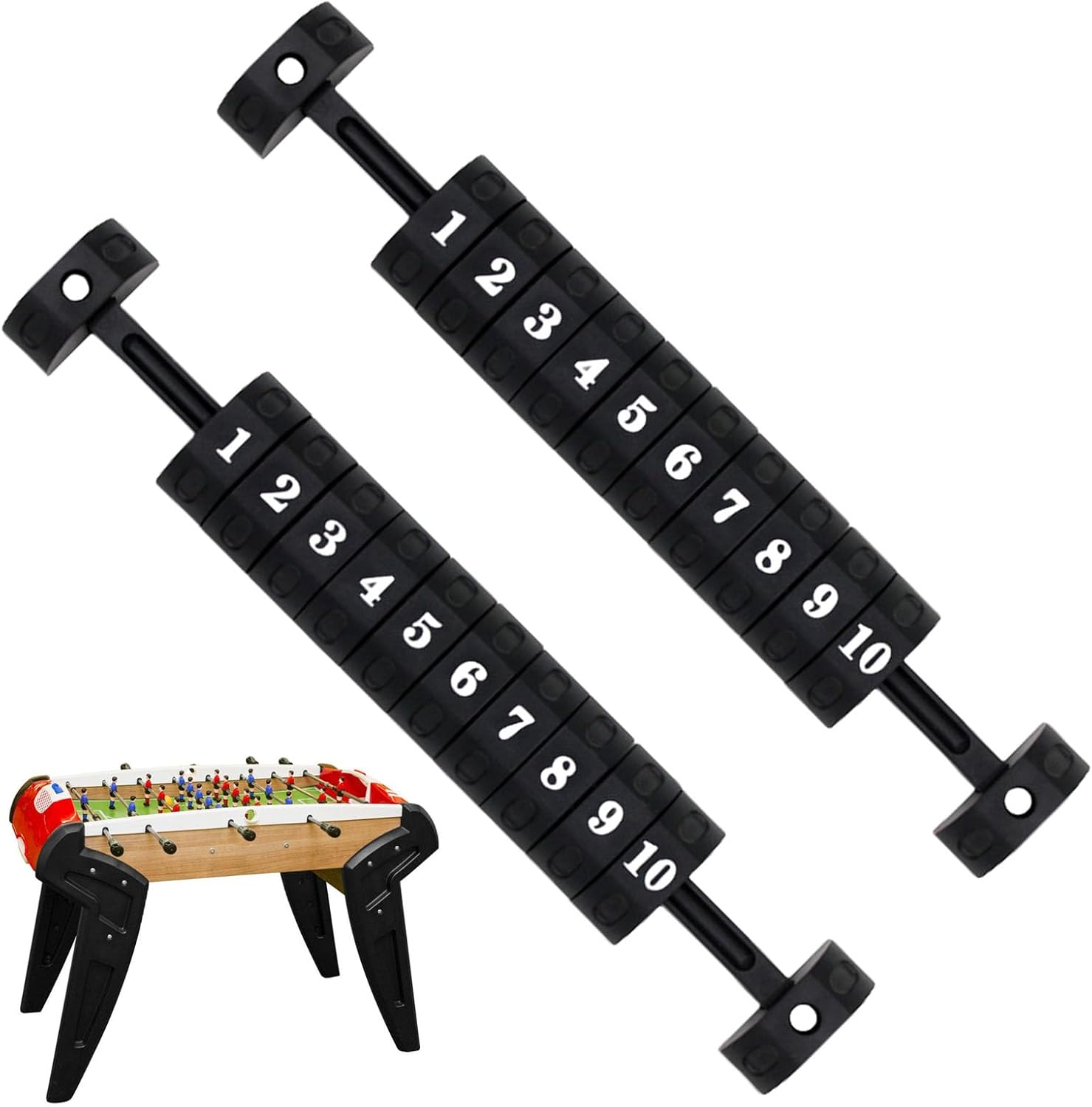 Table Football Counter con sfondo chiaro e numeri bianchi per rendere più facile identificare la marcatura chiara con stampa digitale Viene fornito con 2 contatori, può segnare per due gruppi. Facile installazione e disinstallazione Da 1 a 10, un totale di 10 numeri può contare un gran numero di punteggi Fabbricazione di materiali plastici, forte, durevole, portatile e per uso a lungo termine Ideale per la maggior parte del calcio, calcio balilla per la valutazione
