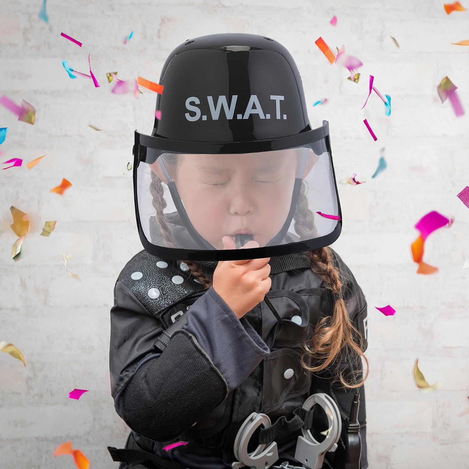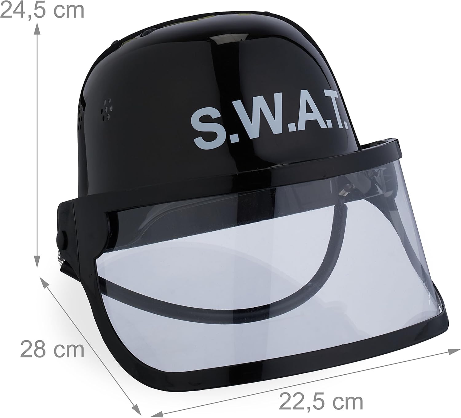Divertimento garantito: vivi avventure entusiasmanti con 2 caschi SWAT - Per bambini e adulti Fedele nei dettagli: il casco riproduce un vero S.W.A.T. - Visiera ribaltabile e scritta S.W.A.T. Regolabile: adatta facilmente il casco da poliziotto - Circonferenza della testa: 45-57 cm. set di 2 caschi SWAT, perfetti per feste di compleanno, carnevale e feste a tema Dettagli: Casco nero S.W.A.T. in plastica resistente - Misure H x L x P: ca. 24,5 x 22,5 x 28 cm