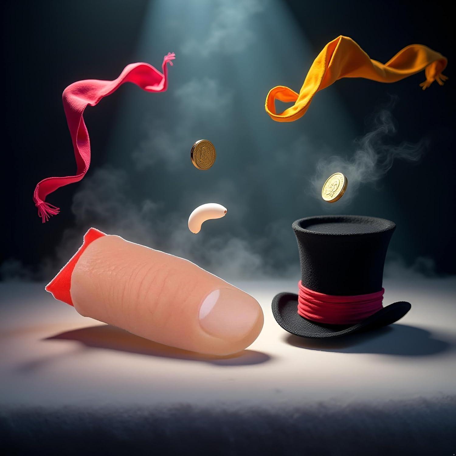 Design professionale: set di 2 punte per i pollici dall'aspetto realistico realizzate in materiale durevole per eseguire trucchi magici e illusioni da vicino MULTIUSO - Perfette per trucchi per far sparire la seta, far apparire o scomparire piccoli oggetti e altre esibizioni di magia classica Facile da usare: ideali per principianti ed maghi esperti, queste punte per i pollici si adattano in modo sicuro e naturale alla maggior parte dei pollici degli adulti Pronti per l'esecuzione: la superficie liscia e il tono naturale della carne aiutano a creare l'illusione durante il lavoro da vicino DIMENSIONI COMPATTE: accessori magici portatili che si adattano facilmente alla tasca di qualsiasi mago o a un borsa tote per spettacoli in movimento