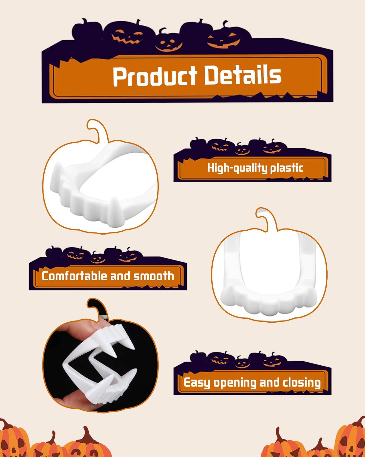 3 denti da vampiro per bambini. Questa volta, i tuoi bambini potranno fare la loro apparizione a Halloween vestiti da Dracula con questo accessorio perfetto. Spaventoso! Troppo spaventosa! Denti da vampiro realistici e divertenti, perfetti per Halloween: comodi e adatti a bambini dai 4 ai 12 anni, i denti di Dracula faranno risaltare il tuo bambino o la tua bambina tra i loro amici. Dracula è arrivato! Risate garantite per tutti ️️ - Grazie ai denti da vampiro per bambini, i vostri piccoli vampiri saranno spaventosi e divertenti allo stesso tempo! Denti da vampiro realistici, perfetti per feste e Halloween, da abbinare al tuo costume da Dracula per creare il costume migliore per la notte più spaventosa dell'anno I migliori costumi - Preparate i migliori costumi per la notte di Halloween, i vostri bambini saranno entusiasti dei loro costumi realistici e riceveranno complimenti sinceri