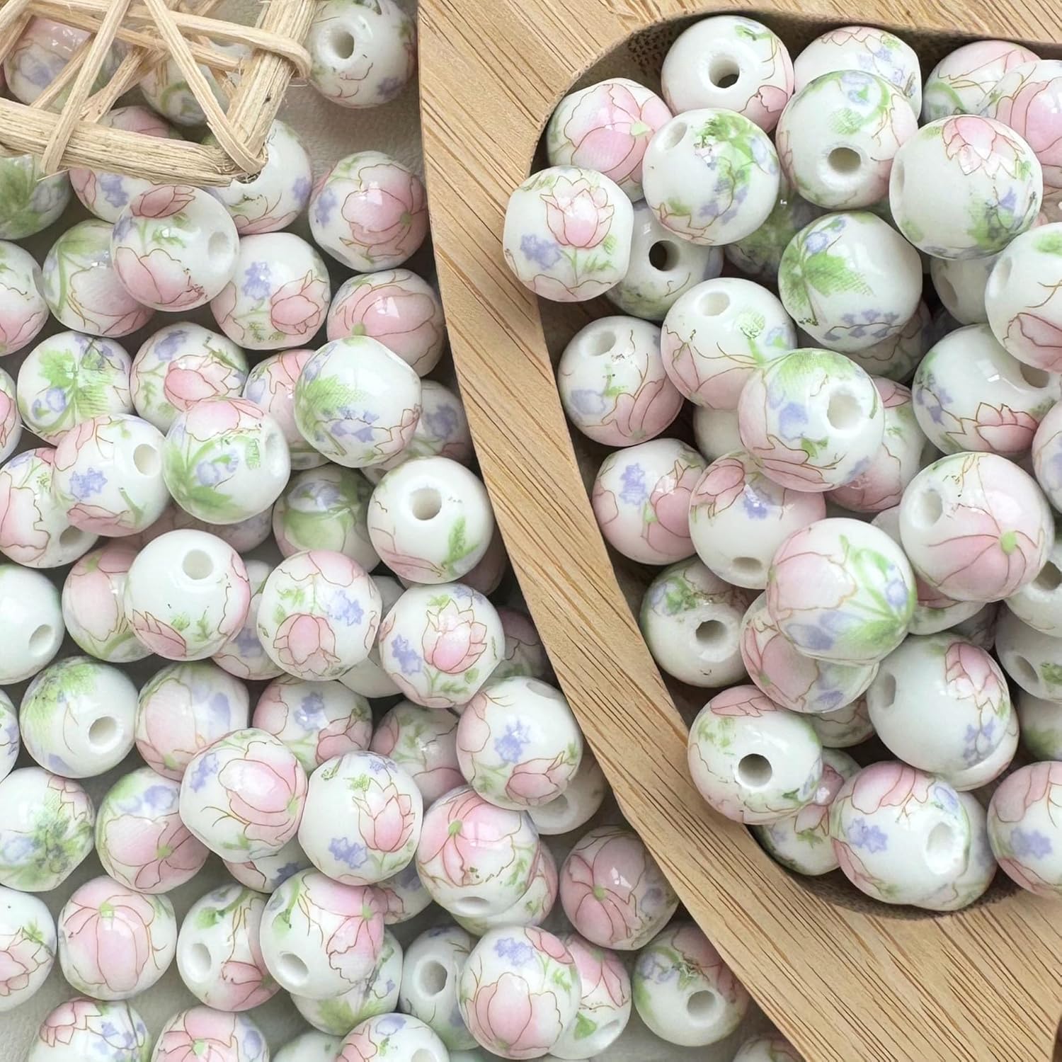 Perline sfuse in ceramica con stampa floreale e fori per un facile utilizzo, dimensione perline: 14 mm, diametro foro: 3 mm Queste perle in ceramica sono stampate con squisiti motivi floreali, i motivi sono retrò, affascinanti e squisiti e sono molto adatti per la creazione di perline Queste perle sono realizzate in ceramica, con il colore smaltato unico della porcellana, la superficie è lucida e liscia, non si rompe o sbiadisce facilmente ed è comoda da indossare Queste perle rotonde colorate in porcellana sono perfette per realizzare braccialetti, collane, orecchini, ciondoli, portachiavi, gioielli, lavori fai da te e decorazioni per la casa Queste perline sciolte in ceramica con stampa floreale sono perfette per essere utilizzate con cordini di cuoio, cordini di canapa, cordini intrecciati e altri materiali per perline per creare bellissimi braccialetti