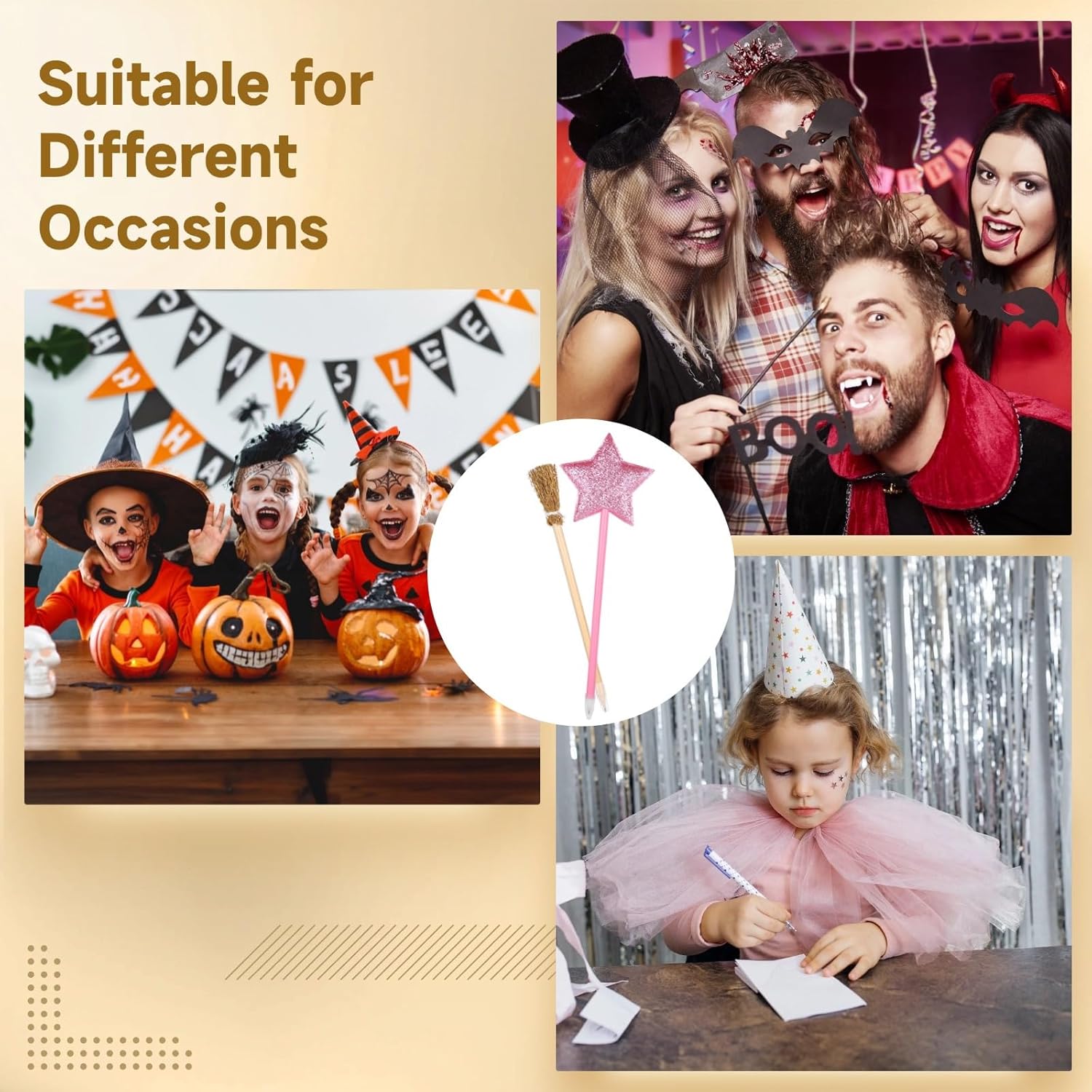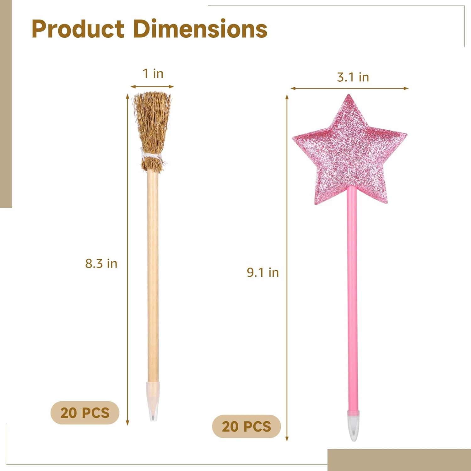 Set completo: questo set contiene venti pezzi, composto da dieci penne a sfera a tema stella insieme a dieci matite stile scopa; le nostre penne vantano un'estetica colorata e giocosa, rendendole desiderabili per bambini e adulti Design affascinante: i glitter abbaglianti coprono la forma a stella, presentando una brillantezza accattivante; le forme di scopa mostrano un accento di setole con una presa in legno; una miscela artistica di fascino e funzionalità Qualità di scrittura ininterrotta: realizzata con componenti in legno e plastica resistenti; evita crepe e deformazioni; la dispersione dell'inchiostro è coerente, fornendo una comoda sessione di scrittura; eccellente per disegnare o comporre Design portatile: la forma ergonomica garantisce una presa senza sforzo e una sensazione di leggerezza; rendendolo adatto per piccoli sognatori e persino anziani; il comfort è una cosa sicura durante le attività di scrittura o le emozionanti attività ricreative per le feste Premio adattabile: adatto per eventi come feste a tema, celebrazioni di compleanno e eventi autunnali; questi affascinanti regali manterranno i visitatori intrattenuti e occupati