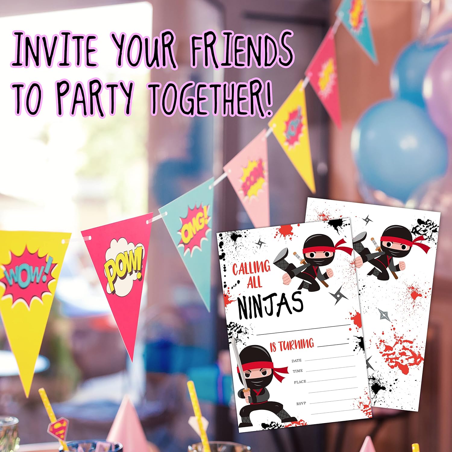 Biglietti di invito di compleanno: gli inviti per feste Ninja Boys Warrior misurano 10,2 x 15,2 cm e sono dotati di una busta corrispondente in cui inserire il biglietto. Riceverete un set di 20 buste con 20 biglietti d'invito. Design per biglietti di invito di compleanno: gli inviti sono splendidamente progettati con una grafica vivace e molto spazio per riempire i dettagli della tua festa: per: Data: Tempo: Luogo: Fornitore: RSVP: Inviti per feste di compleanno di alta qualità: i biglietti sono realizzati in robusta carta patinata di alta qualità. Adatto per scrivere con qualsiasi penna, non devi preoccuparti di sbavature di inchiostro. Gli inviti per feste di compleanno sono ideali per: feste di compleanno per ragazzi o ragazze, bambini e adolescenti, invita la tua famiglia e gli amici alla festa.