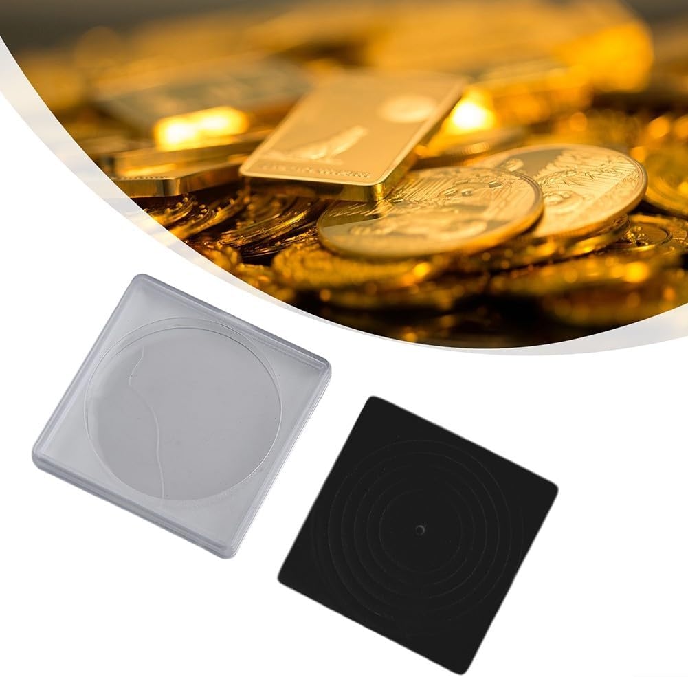Utile raccolta e protezione delle monete: questa scatola è progettata per raccogliere e proteggere efficacemente le monete. Fornisce una soluzione di archiviazione sicura per la tua collezione di monete. Durevoli e resistenti ai graffi: realizzati con materiali plastici ispessiti, questi portamonete quadrati sono altamente durevoli e resistenti ai graffi. Per garantire una protezione duratura per le tue preziose monete. Fodera in schiuma regolabile: ogni portamonete è dotato di un rivestimento in schiuma regolabile, che garantisce una vestibilità sicura e riduce al minimo i movimenti. Il rivestimento in schiuma aggiunge un ulteriore strato di protezione per le monete. Adatto per monete di dimensioni: questi porta capsule sono progettati per ospitare monete con diametri che vanno da 16 mm a 40 mm. Offrono versatilità e possono contenere monete di varie dimensioni in modo sicuro. Design trasparente e compatto: le capsule trasparenti per monete consentono una facile identificazione e visualizzazione delle monete. La dimensione compatta della scatola di 8 4,8 0,7 cm lo rende comodo per lo stoccaggio e il trasporto.