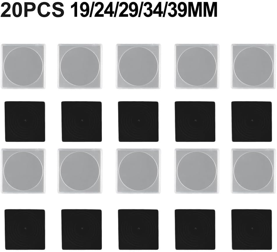 Utile raccolta e protezione delle monete: questa scatola è progettata per raccogliere e proteggere efficacemente le monete. Fornisce una soluzione di archiviazione sicura per la tua collezione di monete. Durevoli e resistenti ai graffi: realizzati con materiali plastici ispessiti, questi portamonete quadrati sono altamente durevoli e resistenti ai graffi. Per garantire una protezione duratura per le tue preziose monete. Fodera in schiuma regolabile: ogni portamonete è dotato di un rivestimento in schiuma regolabile, che garantisce una vestibilità sicura e riduce al minimo i movimenti. Il rivestimento in schiuma aggiunge un ulteriore strato di protezione per le monete. Adatto per monete di dimensioni: questi porta capsule sono progettati per ospitare monete con diametri che vanno da 16 mm a 40 mm. Offrono versatilità e possono contenere monete di varie dimensioni in modo sicuro. Design trasparente e compatto: le capsule trasparenti per monete consentono una facile identificazione e visualizzazione delle monete. La dimensione compatta della scatola di 8 4,8 0,7 cm lo rende comodo per lo stoccaggio e il trasporto.