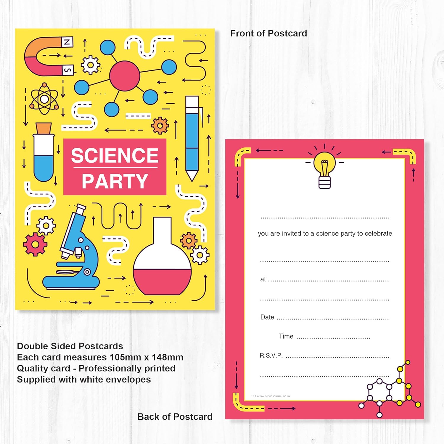Confezione da 20 biglietti di auguri per feste di compleanno di alta qualità, formato A6 (105 mm x 148 mm). Stampati professionalmente su entrambi i lati. Forniti con buste bianche Stampato su carta di alta qualità da 300 g/m² con una leggera lucentezza. Il retro del biglietto ha una finitura opaca per una facile scrittura. Confezionato in cellophane e confezionato nel Regno Unito da Olivia Samuel Consegna gratuita nel