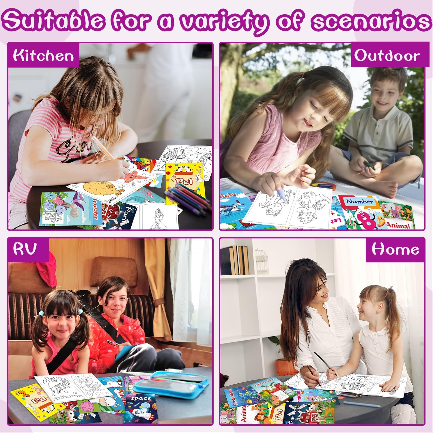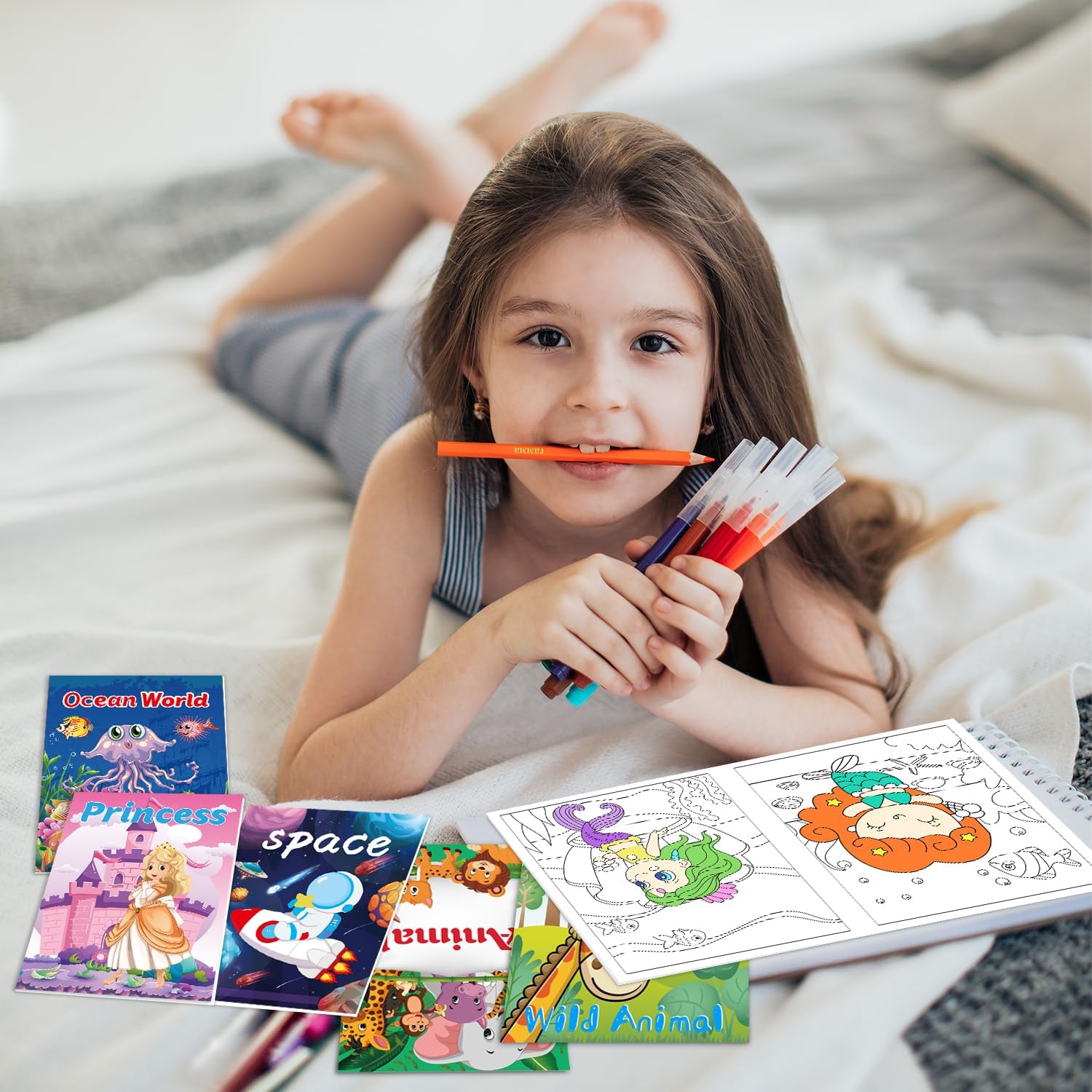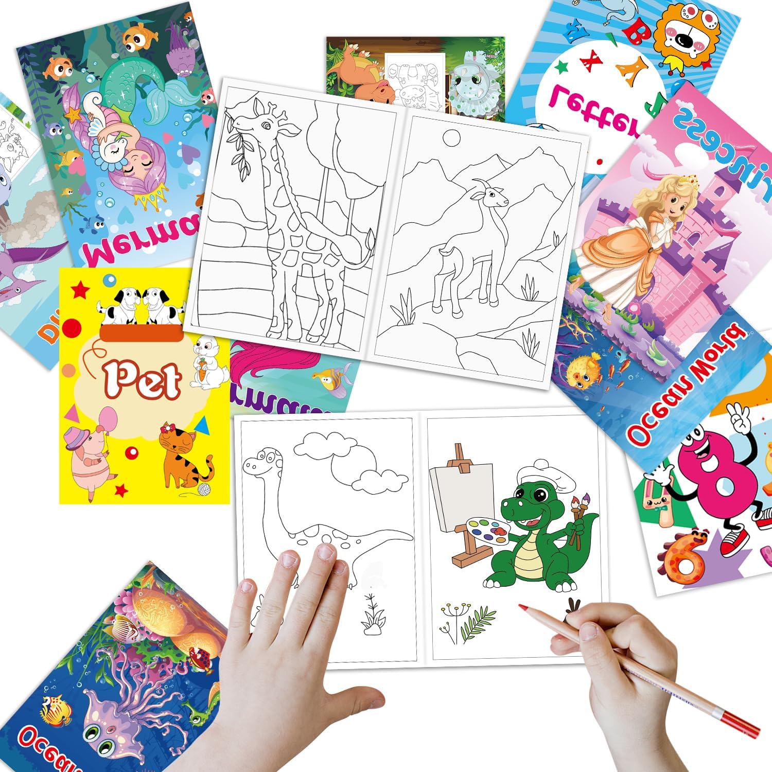 240 PAGINE DA COLORARE UNICHE - NESSUNA RIPETIZIONE: include 20 mini libri da colorare, ciascuno con 6 pagine fronte-retro e 240 illustrazioni diverse! I bambini possono divertirsi con un'ampia varietà di argomenti, tra cui dinosauri, animali da fattoria, animali domestici, vita marina, veicoli e l'apprendimento dell'ABC. DIMENSIONE PERFETTA PER LE MANI PICCOLE: Ogni libro misura 7" x 5" ed è perfetto per le mani dei più piccoli da tenere, sfogliare e divertirsi. Leggero e facile da trasportare: perfetto per viaggi, feste o momenti tranquilli a casa. CARTA SICURA E AMICA DELLA PENNA: realizzata in carta di medio spessore, ideale per matite colorate, matite colorate o pastelli. La stampa fronte-retro massimizza il valore, ma consigliamo di evitare i pennarelli per evitare sbavature di inchiostro. Ideale per i viaggi e il divertimento senza schermo: tieni i bambini occupati durante i viaggi in macchina, le vacanze in famiglia o mentre aspetti al ristorante. Un ottimo modo per ridurre il tempo trascorso davanti allo schermo e incoraggiare l'immaginazione e il legame genitore-figlio attraverso il gioco creativo. Ideale come regalo e bomboniera: perfetto per riempire il cestino di Pasqua, per riempire il sacchetto di compleanno, come ricompensa di classe, come giocattolo di San Valentino o come regalo di Natale. Un modo divertente ed economico per incoraggiare la creatività dei più piccoli e tenerli occupati.