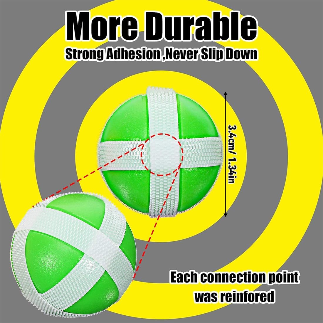 Attrezzatura sufficiente: un set contiene 20 palline adesive, sufficienti per divertirsi sia con l'intrattenimento per giocatore singolo che con giochi interattivi multigiocatore. Dimensioni standard: ogni palla ha un diametro di 3,4 cm, dimensioni moderate, facile da afferrare e lanciare, adatta a persone di età diverse. Gameplay interessante: è appiccicoso e può essere lanciato e assorbito su un bersaglio speciale o su una parete liscia. Può esercitare la coordinazione occhio-mano e aggiungere divertimento e sfida al gioco. Materiale di alta qualità: realizzato con materiali sicuri, ecologici e durevoli, ha una buona elasticità e non si rompe facilmente, ha una viscosità duratura e può mantenere buone condizioni d'uso per lungo tempo. Diversi scenari: può essere utilizzato sia all'interno che all'esterno e può diventare un buon oggetto di intrattenimento per ravvivare l'atmosfera e migliorare le relazioni in occasioni come riunioni di famiglia, attività all'asilo e feste tra amici.