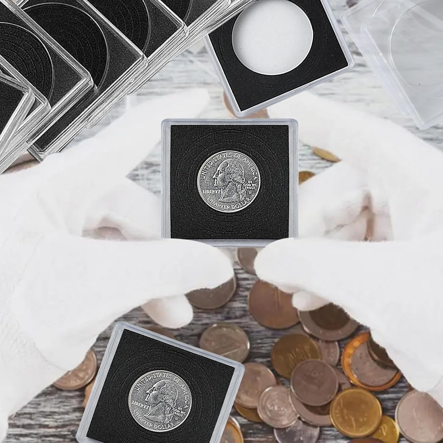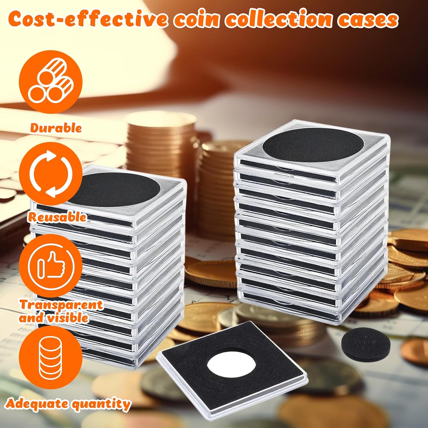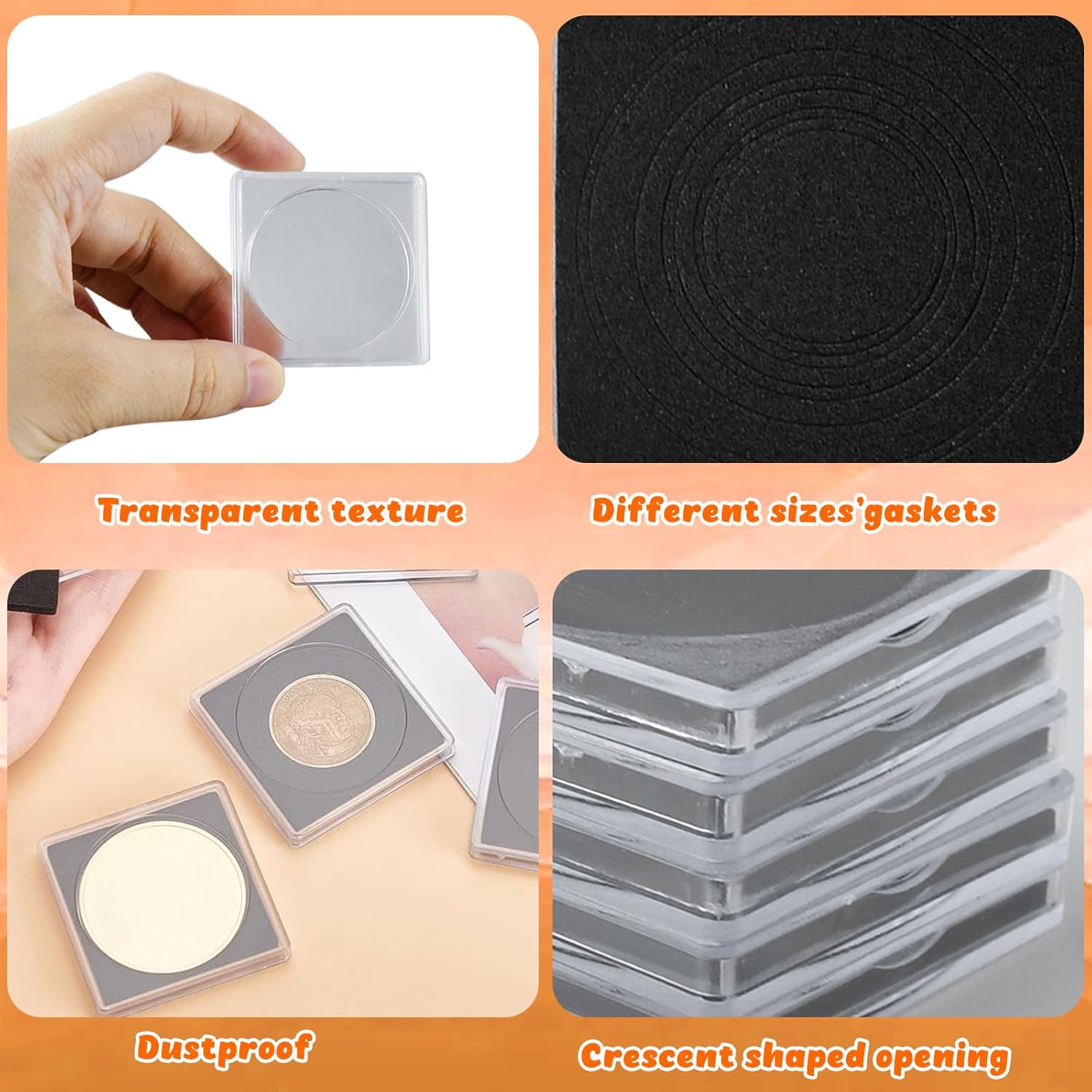 【Capsule Per Monete】Le nostre capsule porta monete da collezione sono disponibili in 8 diverse misure, ideali per il raccoglitore monete da collezione. Le dimensioni di 17/20/25/27/30/33/38/40 mm garantiscono una perfetta adattabilità per le vostre monete da collezione. La capsula portamonete regolabile è progettata per proteggere le vostre monete da collezione con cura. 【Scatola Portamonete】La scatola portamonete da collezione presenta un'apertura a forma di mezzaluna per facilitare l'inserimento e l'estrazione delle monete. L'espositore monete trasparente permette una facile visualizzazione delle vostre monete da collezione. Ideale per essere utilizzata come custodie per monete durante mostre o esposizioni di numismatica. 【Conservazione Monete】Il coin holder con bordo in morbida schiuma EVA protegge efficacemente le vostre monete da collezione da polvere e ossidazione. Il sistema di chiusura sicuro del raccoglitore monete da collezione mantiene le fogli portamonete saldamente al loro posto, garantendo una conservazione ottimale delle monete da collezione. 【Custodie Per Monete】La scatola porta monete collezione è perfetta per la conservazione, esposizione e scambio di monete da collezione. Ideale per utilizzo in cerimonie di premiazione, regali aziendali o esposizioni di numismatica. Il raccoglitore monete da collezione offre una soluzione completa per appassionati di monete. 【Münzen Aufbewahrung】Realizzata in plastica di alta qualità + schiuma EVA, la münzen aufbewahrung offre protezione antipolvere e antiossidante. La struttura robusta e morbida al tatto garantisce una lunga durata e una sicura conservazione delle vostre monete da collezione. Un'ottima scelta per qualsiasi raccoglitore monete da collezione.