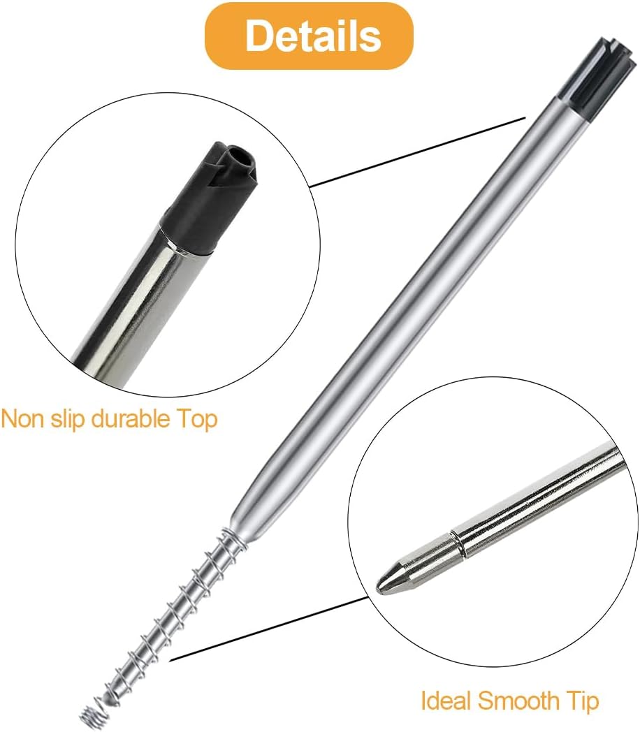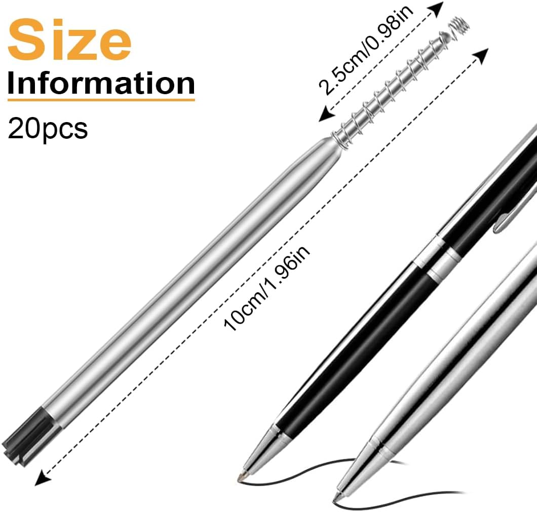 🖋【20 Ricariche di Ricambio】20 ricariche di inchiostro nero con molla. Abbastanza per il tuo uso quotidiano. Puoi preparare alcune ricariche per penne a sfera nel tuo studio o in ufficio per una facile sostituzione. 🖋【Scrittura Fluida e Durevole】La ricarica della penna a sfera in metallo è realizzata in materiale metallico, con una superficie brillante, una buona consistenza, un design di grande capacità e può essere scritta a lungo; la punta della ricarica è liscia e l'inchiostro non lo farà fluiscono in modo intermittente; fornendoti un'esperienza di scrittura fluida. 🖋【Facile da Trasportare】Le ricariche sono lunghe 10 cm/3,94 pollici e pesano 3 g, il che le rende facili da trasportare; puoi tenerle nello studio o in ufficio per sostituirle quando necessario. 🖋【Inchiostro ad Asciugatura Rapida】La ricarica si asciuga rapidamente dopo la scrittura, quindi assicurati che la tua scrittura sia il più liscia possibile senza sbiadire, fuoriuscire e sbavare, il che aiuta anche a mantenere pulite mani e polsini. 🖋【Applicabilità】Il diametro dell'altra estremità del pennino è di 6 mm, queste ricariche per penne a sfera sono adatte per la maggior parte delle penne a sfera, compatibili con Parker, Eraser, Sonic, Star, Zen, Giant, Trendy, Vic, Vino, ecc., che possono fornirti un buon servizio. (Nota: controlla lo stile della ricarica prima di ordinare per assicurarti che questa ricarica si adatti alla tua penna a sfera.)