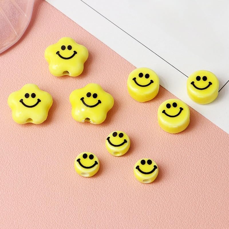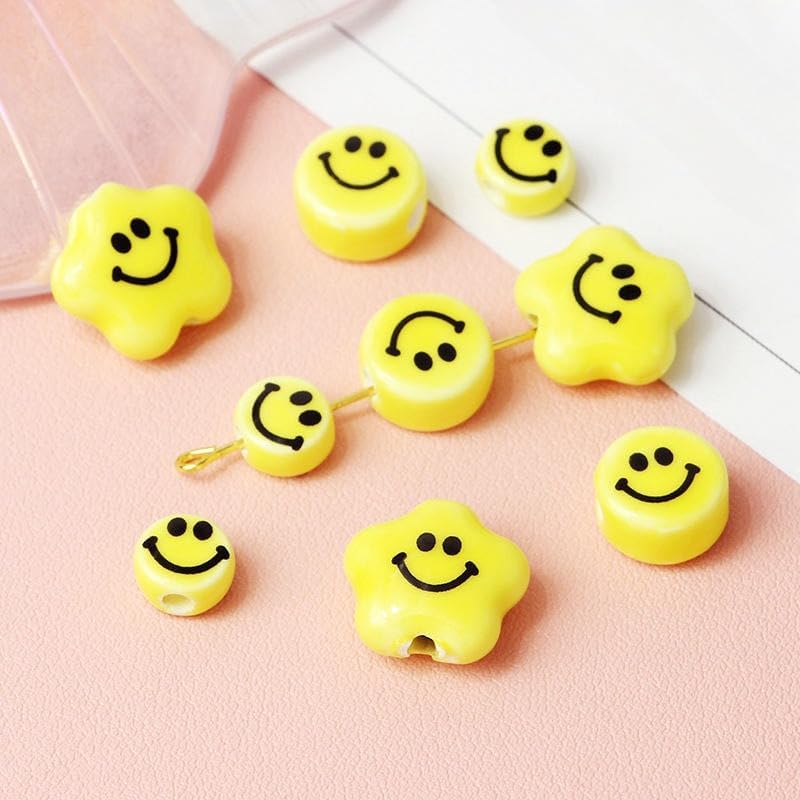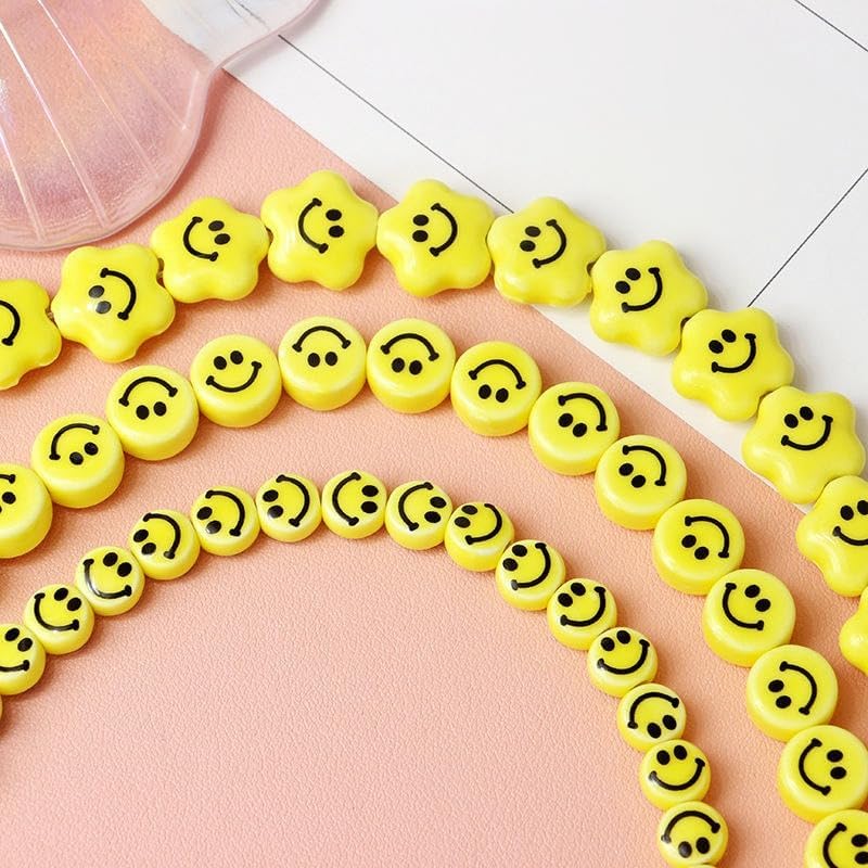 Perline sfuse in ceramica smaltata a forma di smiley, dimensioni: 8 mm, 10 mm, 14 mm, diametro del foro: circa 2 mm, 20 pezzi/confezione Queste perle di porcellana a forma di faccina sorridente sono realizzate in ceramica, hanno un aspetto liscio, non si rompono o sbiadiscono facilmente, sono comode da indossare e possono essere utilizzate a lungo Queste perle di porcellana a forma di faccina sorridente sono facili da abbinare, puoi aggiungere le tue perle con lettere, perle o perline di filo come perline distanziatrici, oppure semplicemente infilarle insieme per creare un bellissimo braccialetto Queste perle di porcellana sorridenti sono disponibili in design rotondi, a cuore, a fiore o a stella per un look carino e unico e sono smaltate in giallo o colorate per colori vivaci Queste perle di porcellana a forma di faccina sorridente sono molto adatte per realizzare braccialetti, collane, orecchini, ciondoli, portachiavi fatti a mano e possono anche essere regalati ad amici a cui piacciono le perle fatte a mano