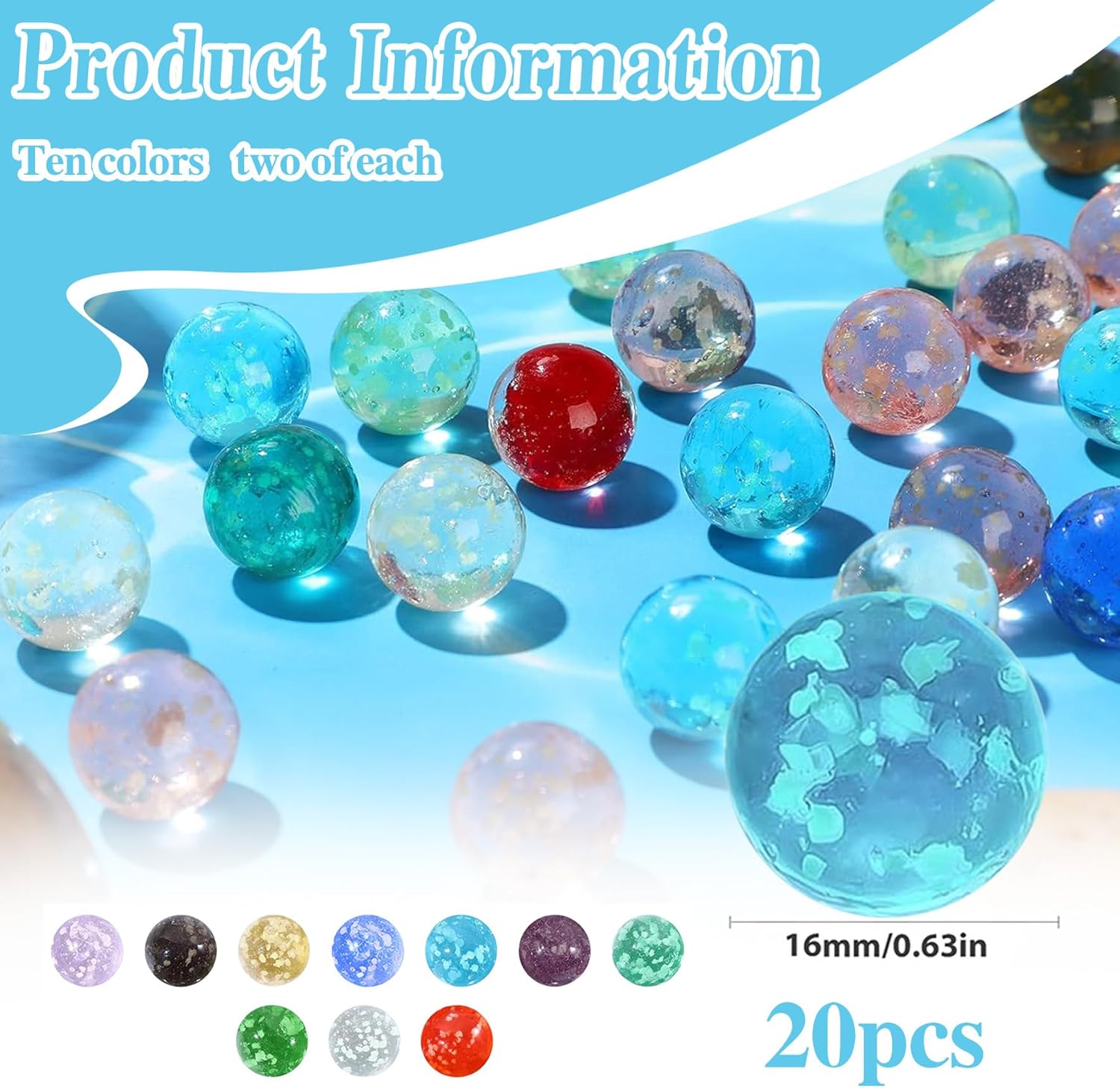 【Artigianato di qualità】:Tutti biglie sono realizzati in vetro nuovissimo di alta qualità,accuratamente lucidato,sono tutti design artigianali lisci e arrotondati di alta qualità,con texture colorate,robusti e durevoli,lisci e lucenti,nessuna crepa o briciola,lavorazione arrotondata,confortevole al tatto e riutilizzabile. 【Giocare Design】:Il nostro biglie è perfetto per diversi giochi di flipper,come i tradizionali giochi da tavolo con clown e flipper,i giochi da tavolo di dama cinese,ecc.È un giocattolo per interni ed esterni con cui i bambini possono giocare ovunque,rotolare,lanciare,lanciare o colpire le biglie con i tuoi amici e funge anche da bellissima decorazione domestica. 【Metodo Emissione di luce】:Questo materiale deve prima assorbire la luce solare e avrà un buon effetto visivo di notte.Puoi metterli biglie spiaggia al sole,oppure puoi irradiarli con raggi ultravioletti per far sì che biglie di vetro emetta luce più brillante.Emetterà luce al buio per circa 1-3 minuti leggero. 【Colori Ricchi】:la confezione regalo contiene un totale di 20 pezzi biglie di vetro,che coprono 10 adorabili colori,tra cui rosso,trasparente,verde,turchese,viola,azzurro cielo,blu,giallo,nero,Viola chiaro,viene fornito con 2 di ogni colore.Questi biglie vetro sono sufficienti per giocare con i tuoi amici. 【Occasioni di Applicazione】:Il nostro biglie vetro può essere utilizzato in una varietà di occasioni,come giochi tradizionali per bambini,attività genitore-figlio o come regali per feste o oggetti di scena in feste di compleanno,feste a tema,asili e attività scolastiche Puoi anche utilizzare le proprietà luminose dei marmi luminosi per decorare scene e creare fotografie.