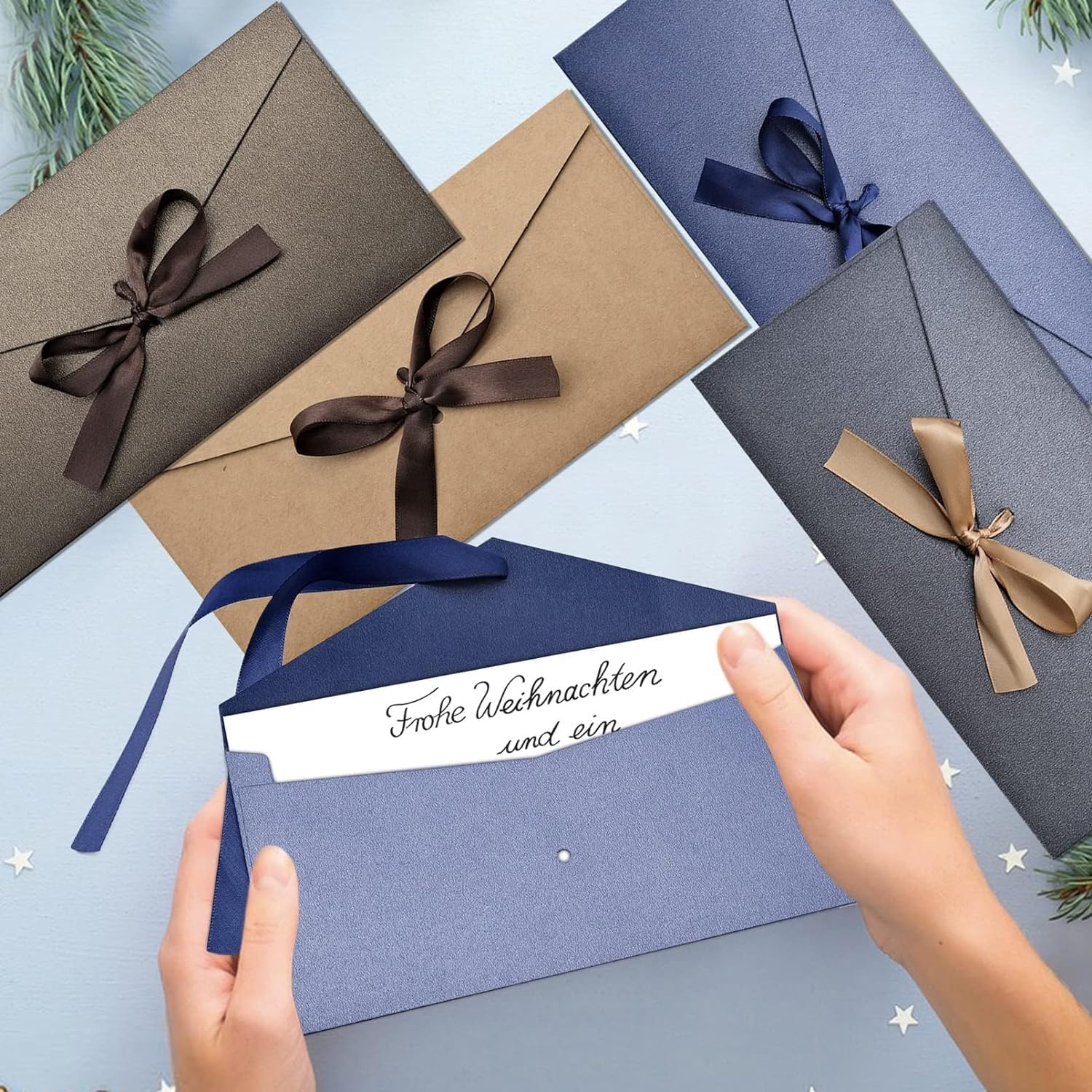 【Buste Premium】Le nostre buste di carta kraft vintage sono realizzate con materiali di alta qualità, garantendo resistenza e lunga durata. Il loro spessore e la texture raffinata le rendono ideali come elegante buste da lettera per occasioni speciali o corrispondenza quotidiana. 【Design a Nastri】 Le buste colorate con nastri sono disponibili in 4 colori vivaci, con nastri coordinati per un tocco decorativo unico. Questo design permette di formare un fiocco elegante, ideale per personalizzare inviti o lettera di invito fatti a mano, unendo estetica e praticità. 【Facile da Trasportare】Le nostre buste colorate per lettere misurano 20x11 cm e possono contenere biglietti d'auguri, inviti o piccoli regali. Il nastro lungo 48 cm facilita la creazione di un fiocco raffinato, mantenendo i contenuti al sicuro. 【Perfetto Fai da Te】Ogni carino buste piccole ha una superficie vuota che consente infinite possibilità creative. Scrivete messaggi personalizzati o disegnate immagini per i vostri cari, trasformando semplici buste in opere d'arte uniche e memorabili. 【Ampia Applicazione】Perfette per ogni occasione, le buste inviti matrimonio aggiungono un tocco elegante e distintivo a matrimoni, feste di compleanno, biglietti di Natale e molto altro, lasciando una straordinaria impressione di raffinatezza.