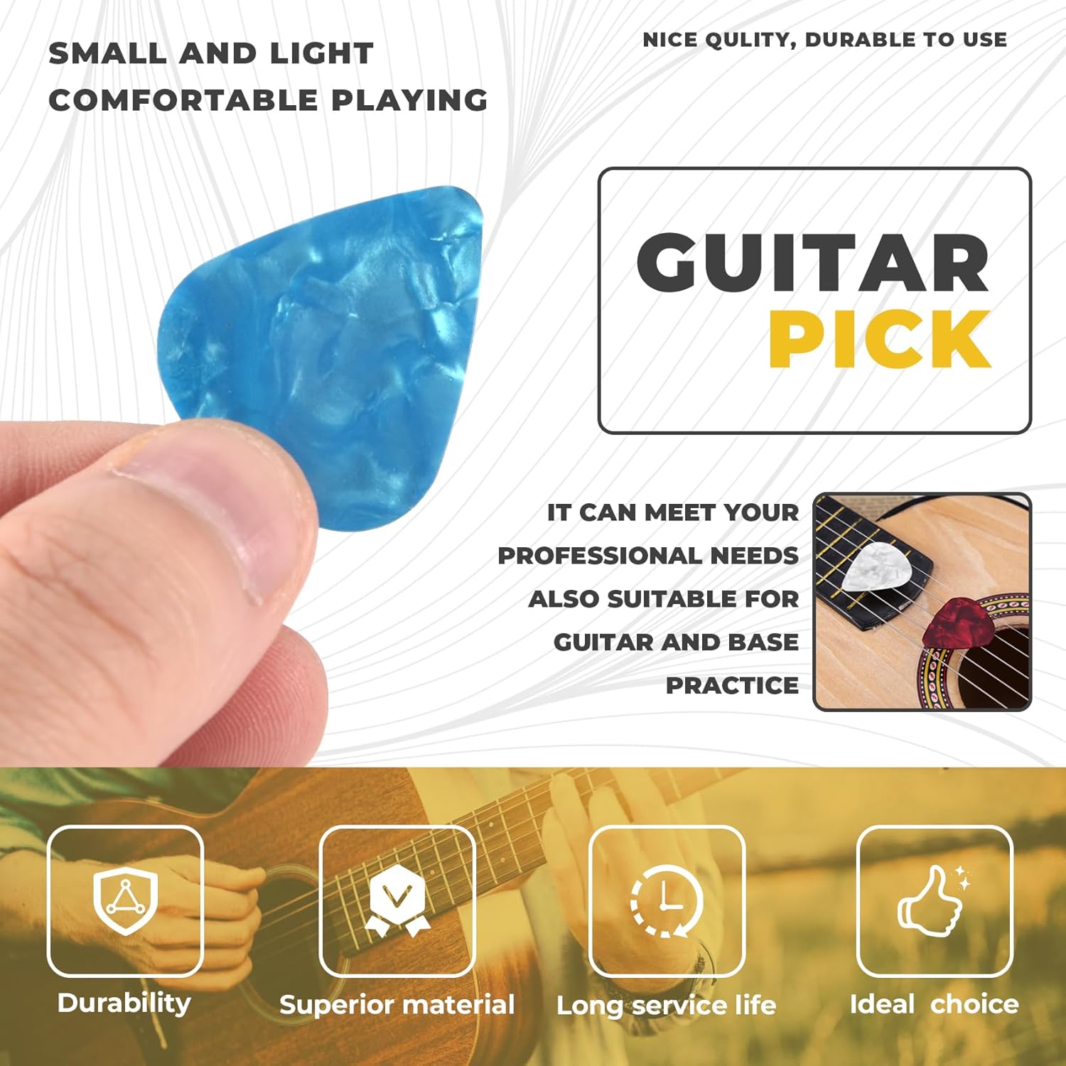 Puo' soddisfare le tue esigenze professionali Adatto anche per la pratica di chitarra e base. Realizzato in celluloide di alta qualita' Un meraviglioso piccolo regalo e un accessorio ultra sottile, leggero, estremamente resistente e piacevole per le
