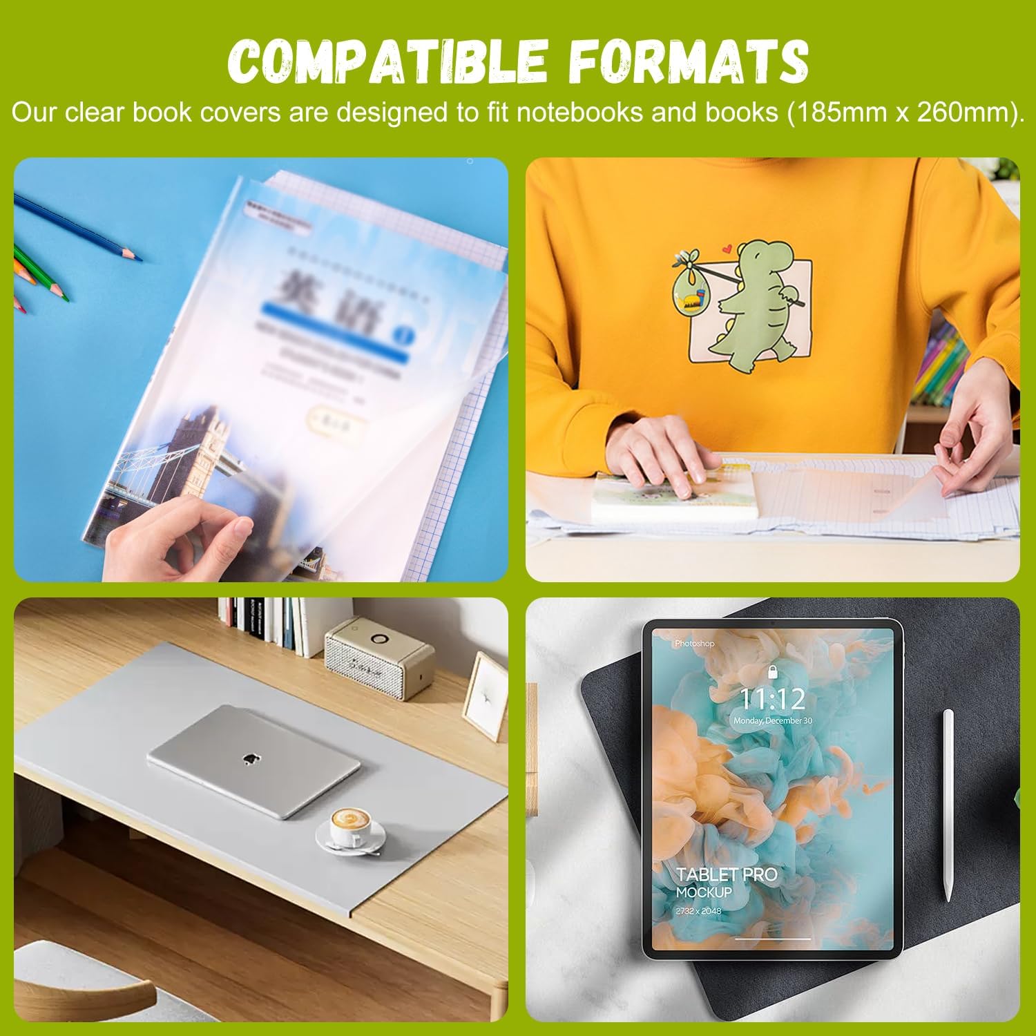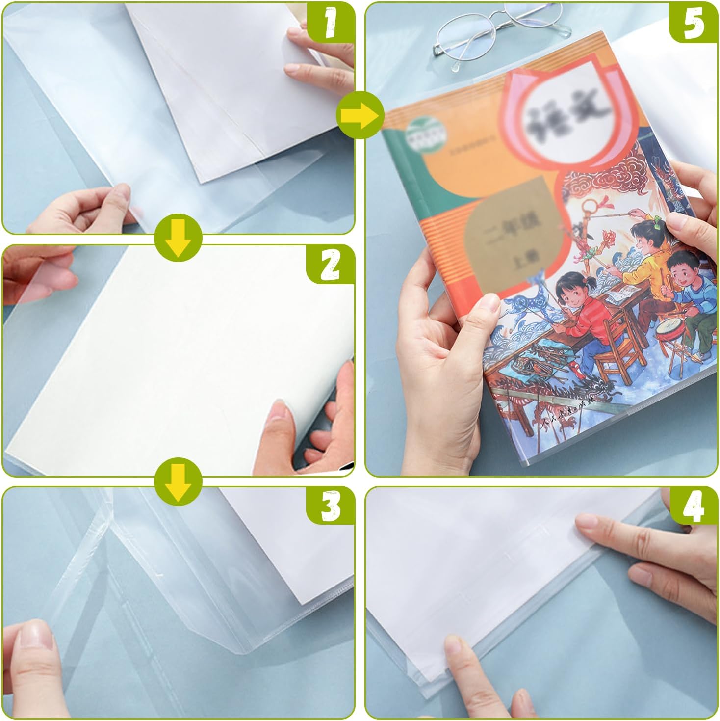 [Copertine per libri in plastica trasparente]: Le nostre copertine trasparenti per quaderni sono progettate per adattarsi a notebook, libri e spartiti musicali di dimensioni 16K (260 mm x 185 mm). Le maniche protettive sono ideali per l'uso a scuola, ufficio, casa e università [Custodia per libri di alta qualità]: La copertina libri scolastici è appositamente progettata per proteggere i tuoi libri. Può proteggere le dita da macchie di olio, segni di penna, sporco e polvere sui libri, mantenendole pulite e concise. Le copertine quaderni possono proteggere efficacemente quaderni, cartelle, zaini e libri da polvere, sporco, umidità, piegature e strappi [Impermeabile]: Le copertine per libri scolastici in PVC resistente offrono una protezione affidabile contro sporco, umidità e orecchie di cane, perfette per l'uso quotidiano [Visibile e leggibile]: La protezione per libri consente di visualizzare facilmente il contenuto dei file senza la necessità di annotazioni sull'etichetta. Queste copertine libri scolastici sono perfette per proteggere a lungo termine i tuoi file/libri di testo [Come usare]: La copertina libri scolastici è trasparente e ha un autosigillante su un lato, che può essere regolato per adattarsi a libri di diversi spessori. Basta far scorrere la copertina del libro nei due lembi di copertura, quindi rimuoverla e incollarla nella posizione corretta sul libro