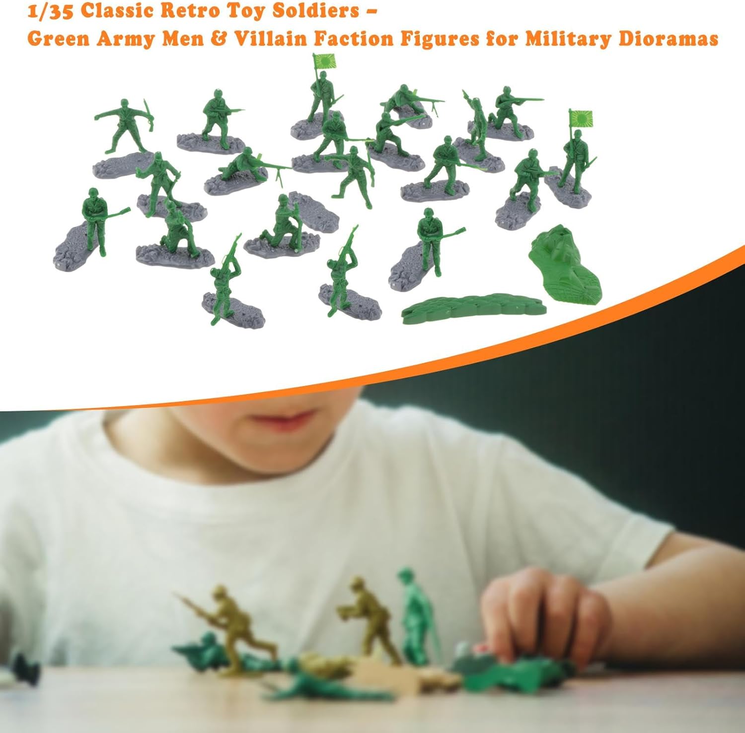 【Set completo con accessori】: il pacchetto include 18 mini soldati e 2 modelli di bunker, fornendo tutto il necessario per creare scene di battaglia dinamiche 【Giocattolo educativo】: Questo set di mini soldatini è un ottimo strumento educativo per imparare dei soldati e può essere combinato con altri giocattoli per un divertimento senza fine 【Materiale Premium】: Realizzati in PP di qualità, questi modelli di soldati in scala 1:35 sono progettati per resistere a ore di gioco mantenendo il loro aspetto dettagliato 【Set di gioco coinvolgente】: questo classico set di modelli di soldatini giocattolo in scala 1/35 offre un'esperienza di gioco a tema accattivante, consentendo ai bambini di esplorare e comprendere dei soldati attraverso varie forme 【Dimensioni adatte alle manine】: ogni soldato è alto circa 4-5 cm/1,57-1,97 pollici, il che lo rende della dimensione ideale per i bambini piccoli da maneggiare comodamente durante il gioco.