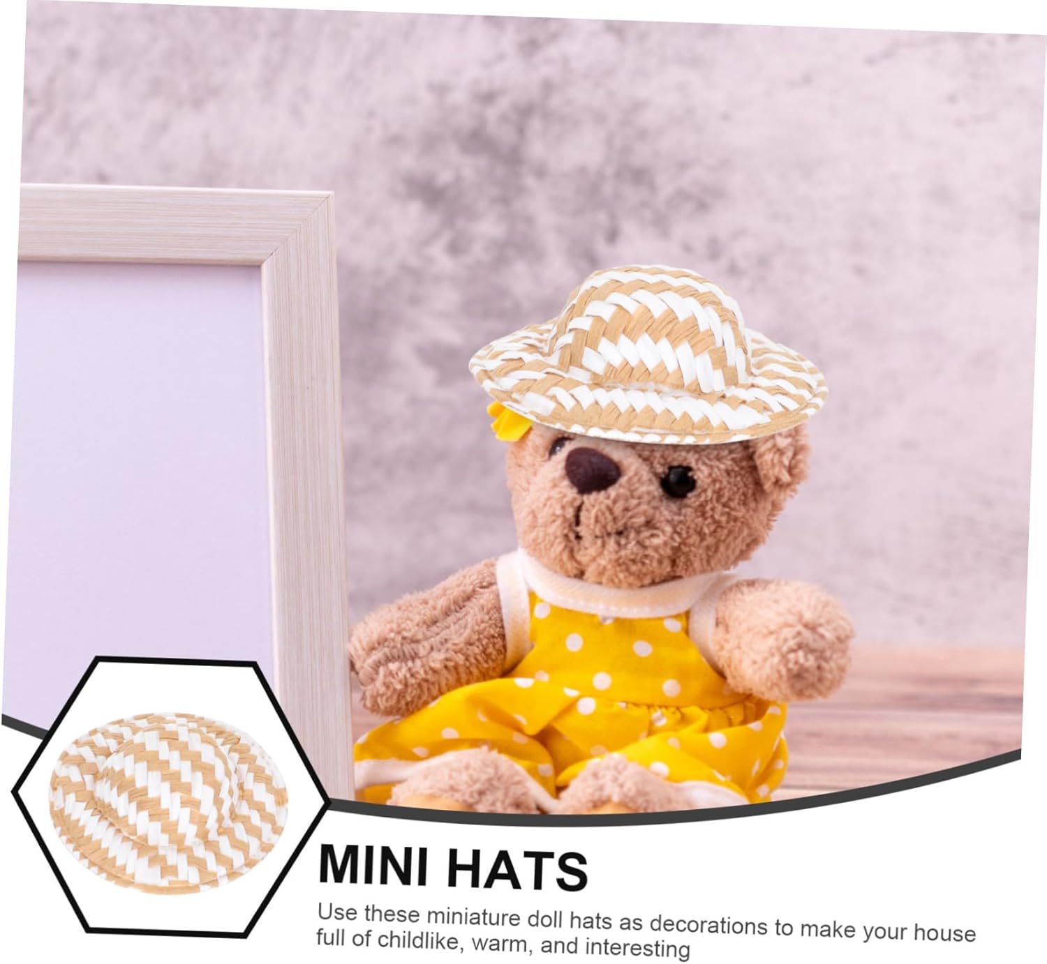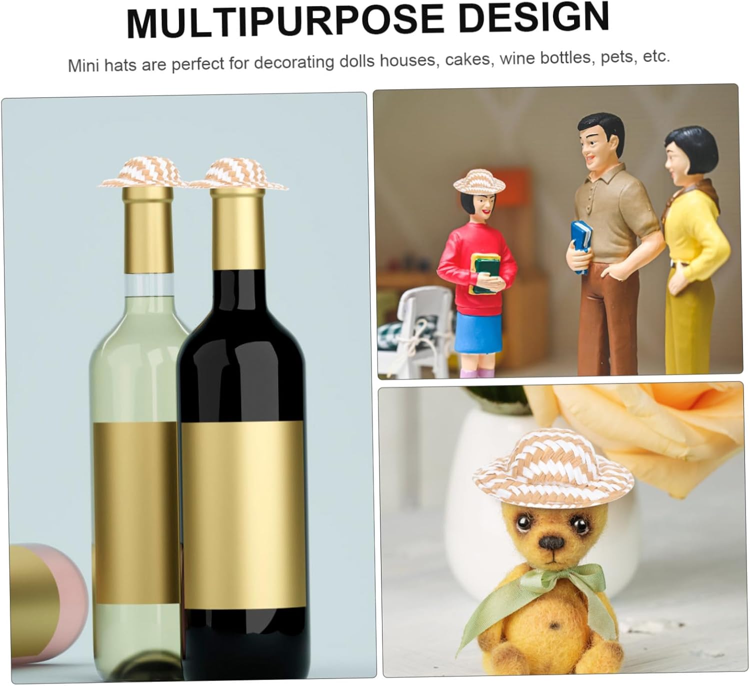 Piccoli cappelli come decorazione - il cappello da bambola intrecciato può essere utilizzato non solo come supporto fotografico, ma anche come pratico accessorio fai da te, mini cappello di paglia per l'artigianato Cappelli di paglia in miniatura - puoi inviare questi piccoli cappelli alla tua famiglia e ai tuoi amici, saranno felici, cappellino Cappelli minuscoli - perfetti per la festa dei bambini, compleanni o altri giorni speciali, ti divertirai a realizzarli tu stesso, cappelli in miniatura per mini cappello Craft - Il cappello in miniatura è realizzato in materiale inodore e può essere utilizzato in sicurezza per molto tempo. Mini cappello per decorazione di cappello intrecciato artigianale - Il piccolo cappello intrecciato è ottimo per la decorazione della casa delle bambole, la decorazione della casa, l'attività artigianale e fotografica., mini cappelli di paglia