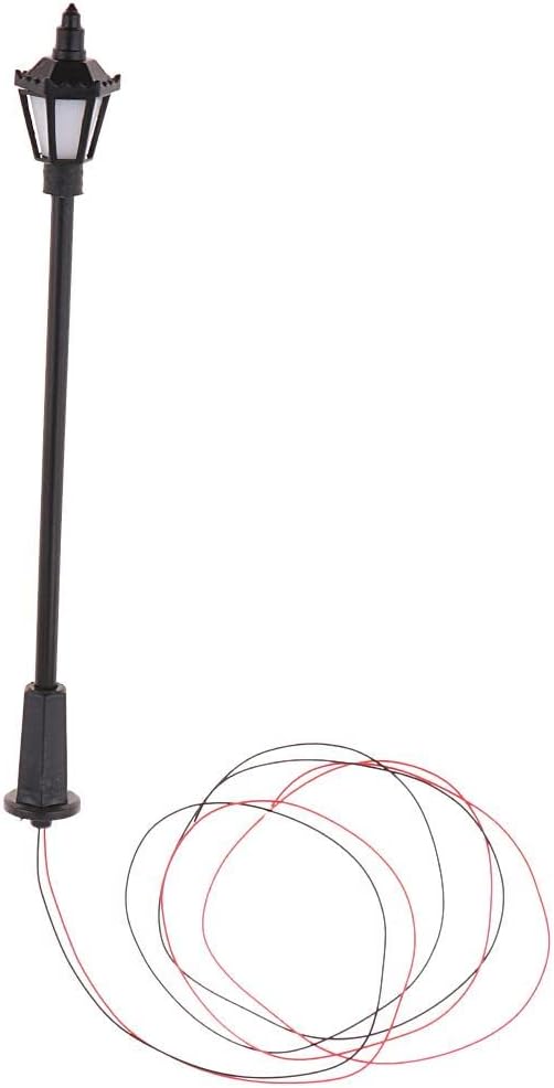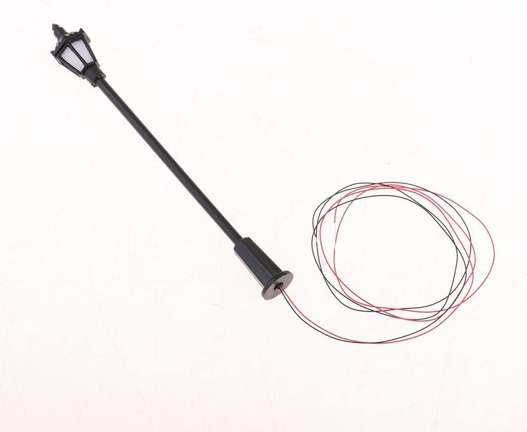 Confezione da 20 lampioni stradali in miniatura in scala 1:75 modellino ferroviario treno Emissione di colore: bianco caldo; Tensione: 3V Adatto per scala OO o scala HO, ecc Altezza: 100 mm Perfetto per mini miniature da giardino decorazioni paesaggistiche