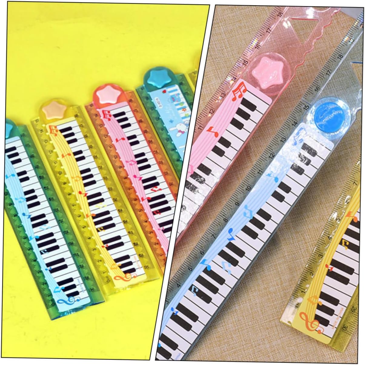 Accessorio per bambini: inciso con scala chiara incisa, il righello è facile da leggere e utilizzare. Righello per bambini riutilizzabile: design raffinato e pratico con un bell'aspetto, facile da trasportare e utilizzare. Righello per studenti scolastici: sottile e leggero, non devi preoccuparti che rompa il libro o aggiunga altro colore al tuo libro. Fornitura per bambini: piccola e raffinata, facile da usare e trasportare, può offrirti una buona esperienza. Righello portatile per bambini: motivo della tastiera del pianoforte, delicato e bello, può essere utilizzato anche come libro delicato, arca.