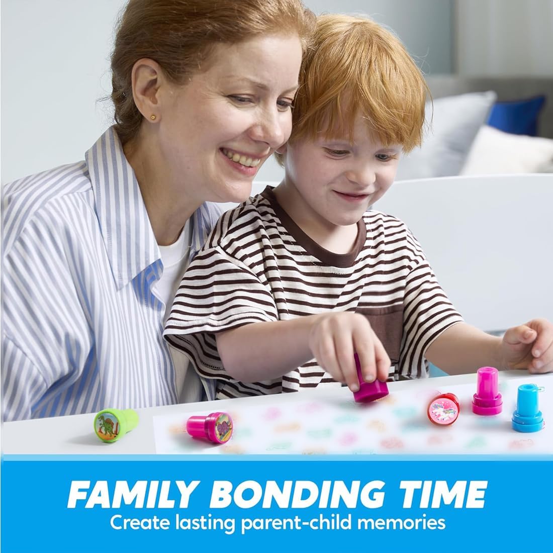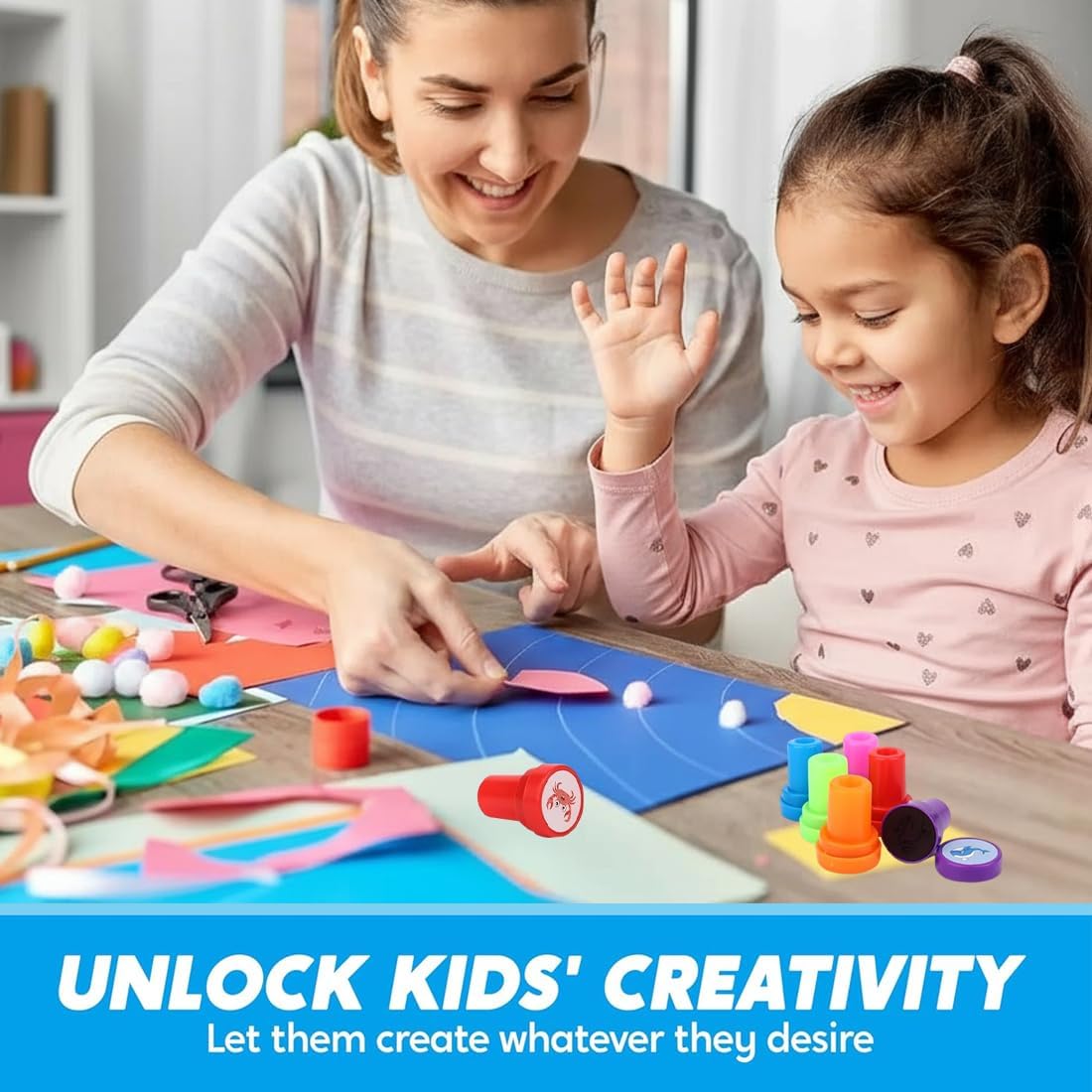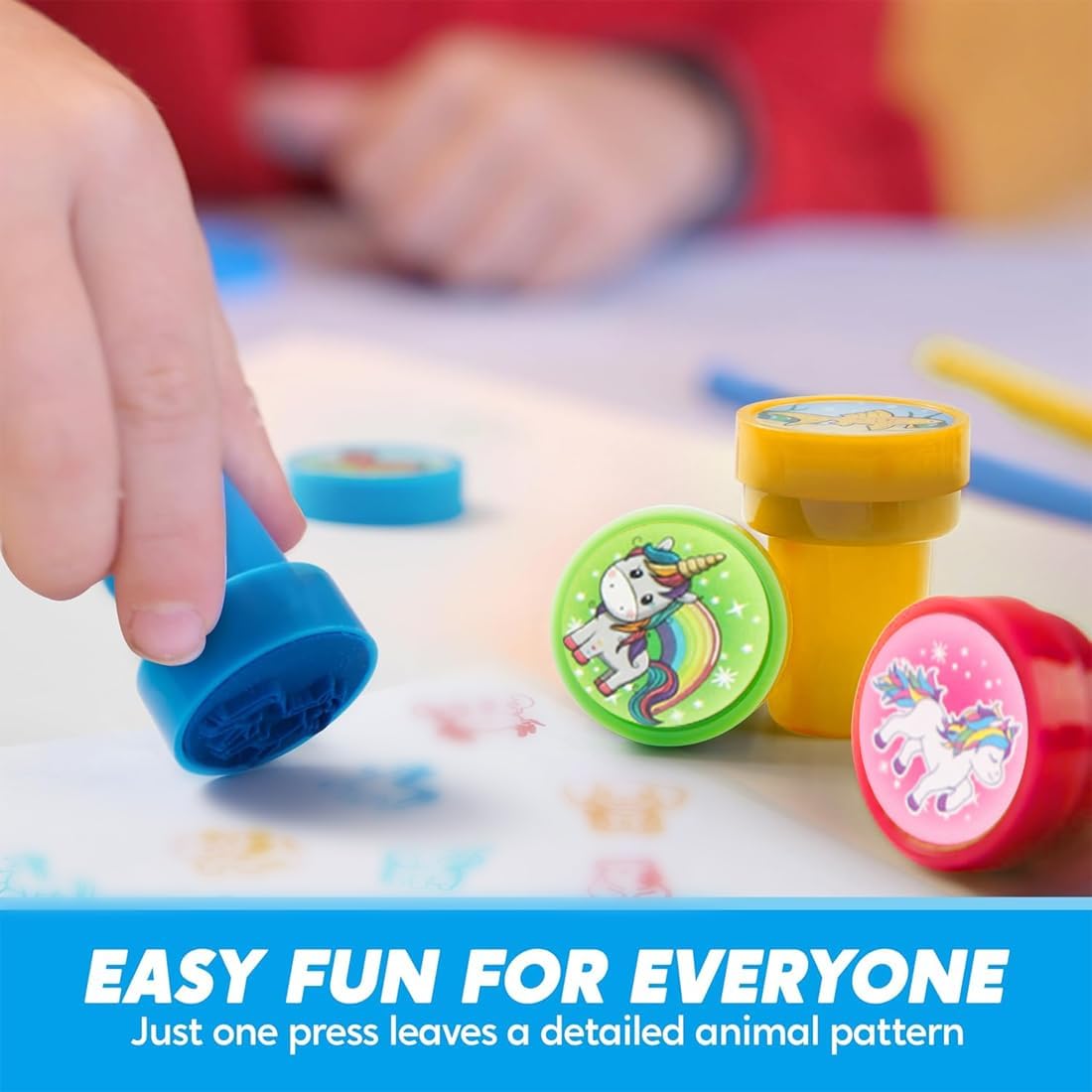 Materiali sicuri e durevoli: I timbri per bambini sono realizzati con materiali atossici e privi di BPA, garantendo la sicurezza dei più piccoli. Ogni timbro è pre-inchiostrato, eliminando la necessità di un tampone aggiuntivo. La struttura resistente consente un utilizzo ripetuto, offrendo divertimento a lungo termine Design con motivi di animali: Il set include 20 timbri con adorabili motivi di animali in diverse tonalità. I disegni chiari e colorati stimolano la creatività dei bambini, rendendo ogni utilizzo un'esperienza divertente. Ideale per sviluppare la fantasia in modo giocoso Comodo design auto-inchiostrante: Ogni timbro è dotato di inchiostro integrato in colori vivaci che catturano l'attenzione dei bambini. Non è necessario ricaricare l'inchiostro e il coperchio mantiene la freschezza dopo l'uso. Perfetto per un utilizzo pratico e senza disordine Facile da usare: I motivi sono chiaramente visibili sui coperchi, facilitando la scelta del timbro desiderato. Funzionano al meglio su carta bianca o cartoncino e richiedono solo una leggera pressione per ottenere disegni nitidi. Ideali per regalini fine festa o progetti creativi Perfetti per ogni occasione: Questi timbri per bambini sono un'ottima idea per regalini fine festa compleanno, attività scolastiche o premi per insegnanti. Grazie alla loro versatilità, sono perfetti per intrattenere i bambini in modo educativo e divertente