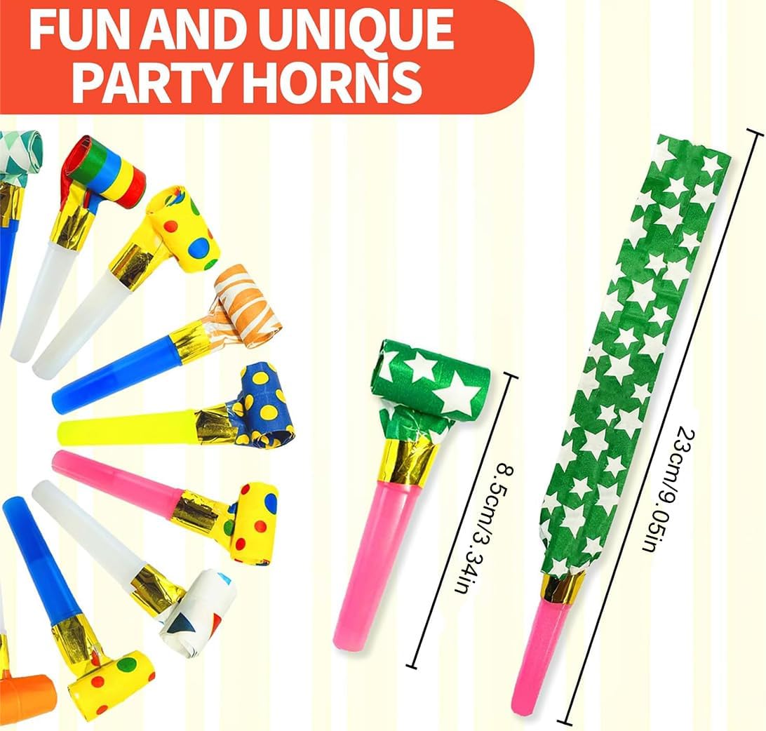 Material affidabile: Realizzati con materiali di alta qualità, i fischietti da festa sono sicuri e resistenti. Durevoli e difficili da strappare, perfetti per un divertimento senza preoccupazioni Giocattolo creativo: Questi divertenti fischietti emettono un suono forte quando si soffia. La linguetta si estende e ritorna automaticamente, aggiungendo un tocco di allegria alla festa Design vivaci: I fischietti di compleanno sono disponibili in vari colori e motivi come pois, triangoli e cuori. Le tonalità brillanti rendono l'atmosfera della festa più vivace Ampia applicazione: Perfetti per feste in maschera, Natale, lauree, compleanni e matrimoni. Aggiungono colore e divertimento a qualsiasi celebrazione Stili casuali: Il pacchetto include 20 fischietti in colori assortiti. I colori vivaci catturano l'attenzione dei bambini, creando un'atmosfera festosa