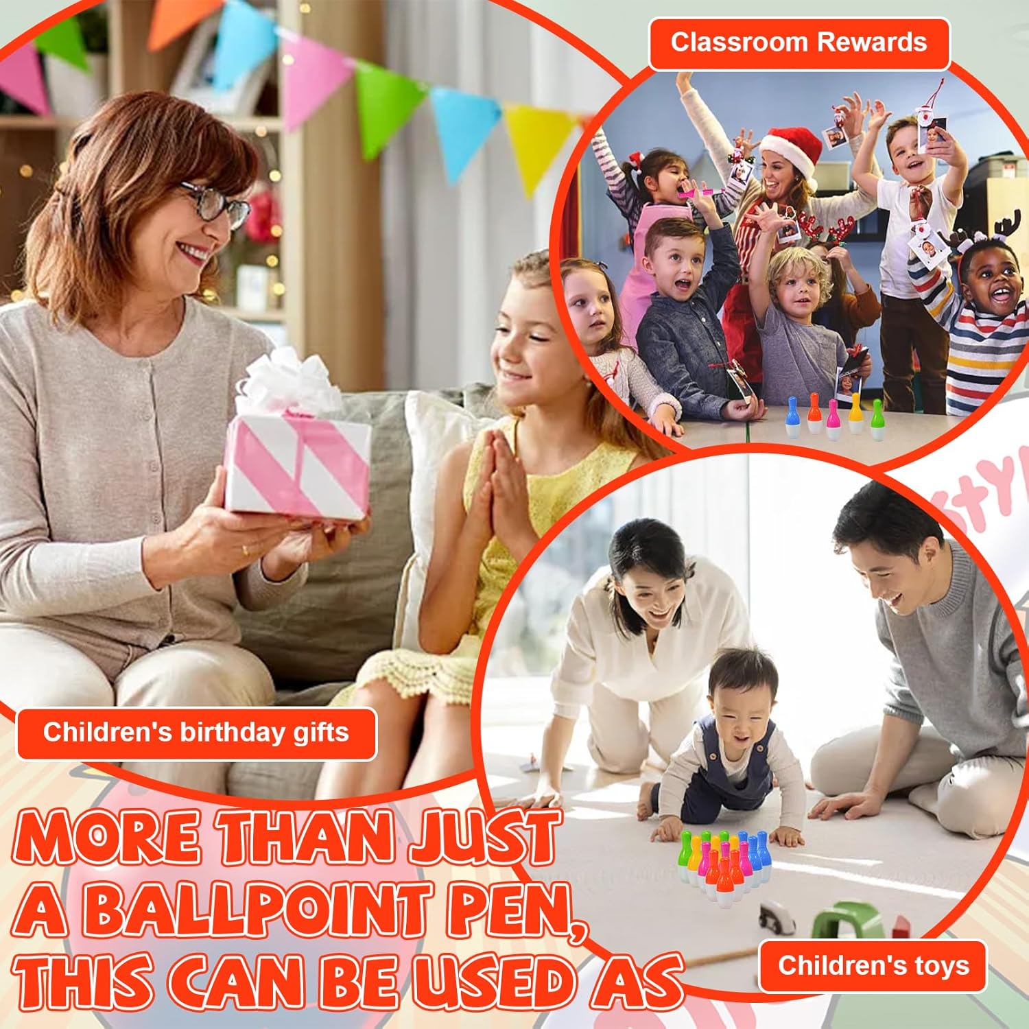 【Design della palla da bowling】 Questa penna a sfera si ispira ai birilli da bowling. Il corpo della penna a sfera imita la classica silhouette di un birillo da bowling e presenta una tavolozza di colori colorati che conferisce a ogni penna un aspetto unico e giocoso. Il design non solo cattura la vivace sensazione del bowling, ma lo rende anche uno strumento di scrittura adatto all'uso quotidiano grazie alla miniaturizzazione che rende la scrittura un piacere 【Design della penna a sfera retrattile portatile】 La penna da bowling ha un meccanismo a sfera retrattile a due stadi. Grazie alle sue dimensioni compatte di soli 7 cm quando è esteso, si adatta facilmente a qualsiasi astuccio, borsa o astuccio. Quando è esteso, raggiunge una comoda lunghezza di scrittura di 12,5 cm. Una fibbia retrattile antiscivolo al centro del corpo della penna a sfera garantisce una presa sicura e quindi impedisce la retrazione accidentale 【Plastica leggera e resistente】 Realizzata in plastica di alta qualità, questa penna a sfera retrattile offre un design leggero e resistente alle cadute che resiste alla deformazione e all'usura anche con un uso prolungato. La superficie opaca è antiscivolo e comoda da impugnare, garantendo una scrittura senza fatica anche quando si scrive per lunghi periodi di tempo 【Sensazione di scrittura fine da 0,5 mm】 La penna a sfera per cartoni animati è dotata di una punta a sfera in acciaio di precisione da 0,5 mm e inchiostro blu con flusso di inchiostro fluido e stabile per linee pulite. Perfetto per i compiti, gli appunti o i disegni, scrive in modo fluido e senza ritardi. Che si tratti di appunti veloci o schizzi dettagliati, è adatto a un'ampia gamma di situazioni di scrittura 【Interazione e vantaggi pratici】 La mini penna da bowling non è solo un pratico strumento di scrittura, ma anche un divertente giocattolo interattivo. La forma della palla da bowling suscita l'interesse dei bambini per la scrittura e il disegno. Può anche essere utilizzato come regalo per una festa, come ricompensa per la classe o come oggetto di scena interattivo creativo. È adatto per l'uso a casa, a scuola o in ufficio