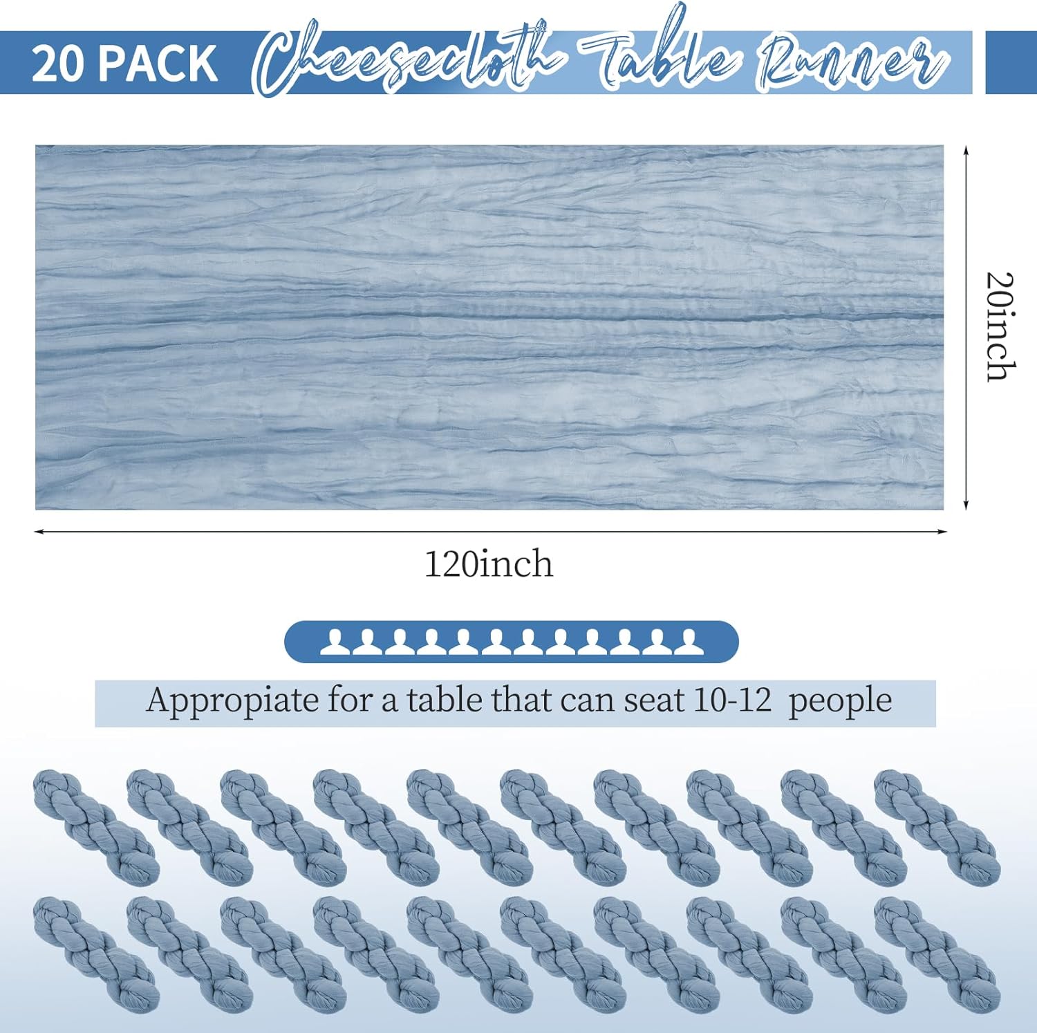 Il pacchetto include: Riceverai 20 runner da tavolo in garza blu polveroso, una quantità sufficiente è adatta per banchetti nuziali e feste varie, la dimensione dei runner da tavolo è di circa 50x300 cm, che è abbastanza grande da coprire tavoli rettangolari e rotondi, adatti per tavoli da 8-10 persone. Il runner da tavolo blu polvere ha una struttura stropicciata naturale che stupirà i tuoi ospiti. 【Tessuto morbido e resistente】 Il runner da tavolo in garza di formaggio è realizzato in poliestere di alta qualità, morbido al tatto, runner da tavolo in garza di alta qualità con tessuto in garza antirughe, lavabile e resistente allo sbiadimento, design senza cuciture, bordi e punti delicati, riutilizzabile, leggero e trasparente, con eccellente drappeggio. Il runner da tavolo in garza di alta qualità si drappeggia magnificamente sul tavolo del banchetto, aggiungendo un'atmosfera romantica al tuo tavolo da pranzo. SPECIALE Design antirughe: il runner da tavolo blu polveroso ha una tecnologia antirughe unica, in modo che il tessuto del runner da tavolo abbia naturalmente una struttura antirughe bella ed elegante. È molto facile creare bellissime volant sui piani dei tavoli o lasciarle fluttuare liberamente sul pavimento, aggiungerà un tocco elegante alla tua tavola in ogni evento, soprattutto abbinato a temi boho, chic o altri temi moderni. Ampiamente usato: il runner da tavola in garza è adatto per matrimoni, addio al nubilato, baby shower, banchetti, anniversari, archi nuziali, ricevimenti, buffet di dolciumi, fondali per dessert, spettacoli, cabine fotografiche, cerimonie. Il runner da tavolo blu polvere può essere utilizzato anche per strutture di sedie, tende, caminetti, mensole, armadietti, porta TV, divani, comodini e qualsiasi altro mobile che necessiti di un tocco romantico. Istruzioni per la cura: il runner da tavola in garza può essere lavato a mano o in lavatrice con un ciclo delicato con un sacchetto per la biancheria. Per mantenere la consistenza rugosa, non stirarlo e utilizzare acqua calda, evitare un lungo ammollo. Dopo la pulizia, adagiare il runner da tavolo o appenderlo ad asciugare in modo che il runner di garza possa essere riutilizzato.