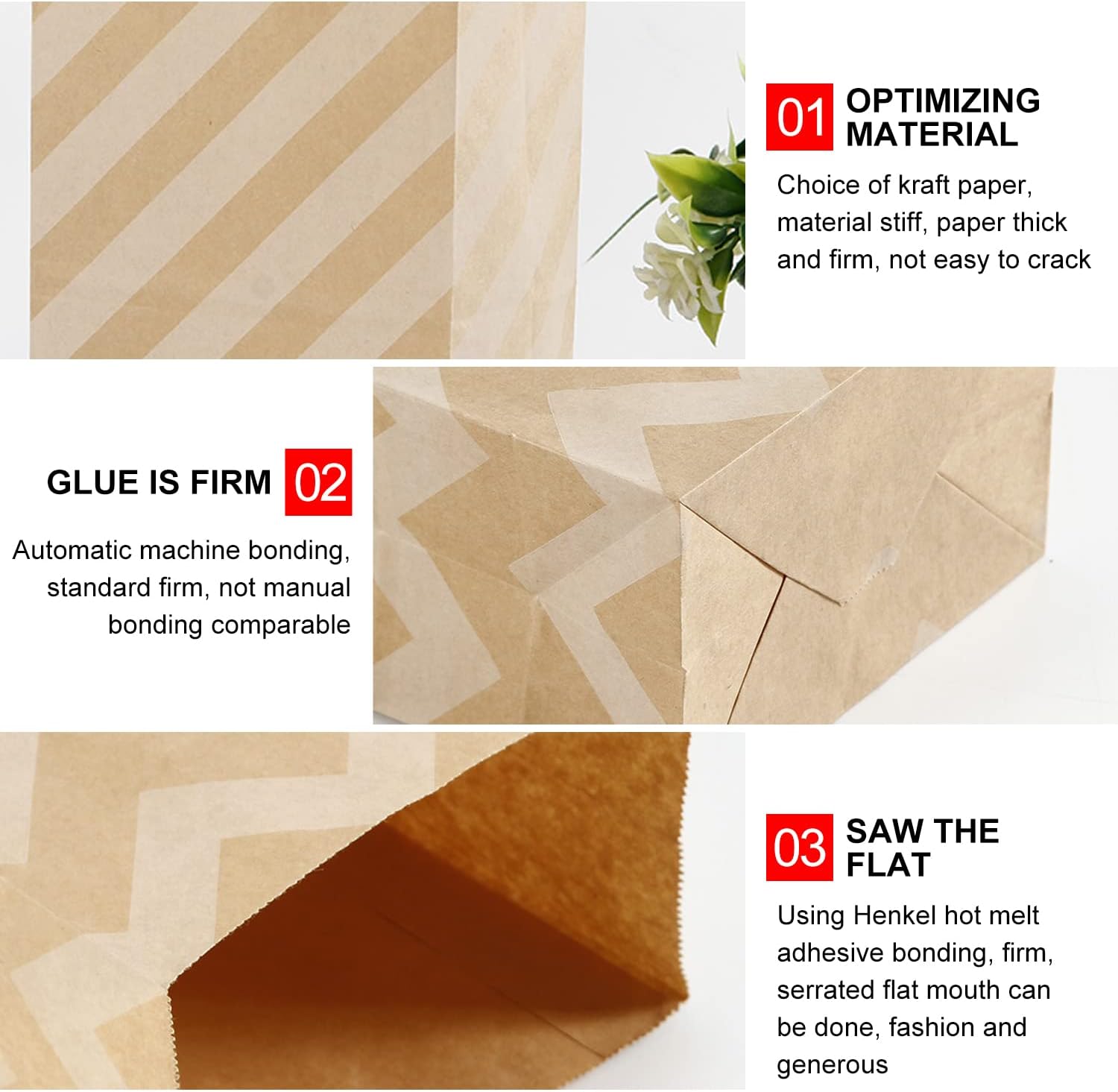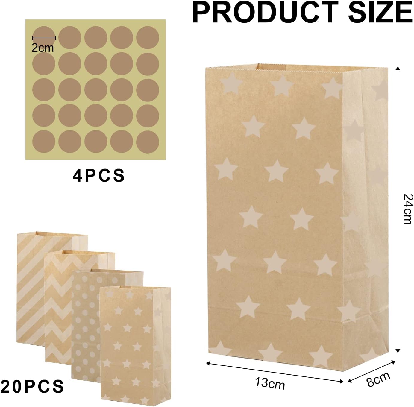 La confezione include: 20 sacchetti regalo marroni (13 x 8 x 24 cm), 4 stili (Polka Dot, Star, Wave, Twill), 5 pezzi per ogni stile, 100 adesivi rotondi (diametro 20 mm), quantità sufficiente per le tue necessità quotidiane. Materiale: il sacchetto di carta è realizzato in carta kraft, che ha una lunga durata. I sacchetti di carta Kraft sono riutilizzabili, ecologici, inodori, biodegradabili e sicuri da usare. Aiutano a proteggere l’ambiente dai rifiuti di plastica e a promuovere lo sviluppo sostenibile. DIMENSIONE PERFETTA: Questi sacchetti di carta sono molto spaziosi e misurano 13 x 8 x 24 cm, permettendoti di riporre facilmente i tuoi oggetti. Puoi attaccare graziosi adesivi rotondi. Si tratta di oggetti durevoli, non facili da perdere e adatti a molte occasioni. DESIGN INDIVIDUALE E PRATICO: questi sacchetti di carta hanno un fondo piatto in modo che possano stare in piedi. Questi sacchetti di carta marrone sono perfetti per conservare torte, caramelle, biscotti e altri oggetti. BORSA REGALO VERSATILE: la carta kraft marrone è perfetta per confezionare biscotti, panini, panini, popcorn, alimenti sfusi, semi, souvenir, medicine, viti e altri piccoli oggetti. Possono essere utilizzati per incartare regali per affari o invitati a nozze.