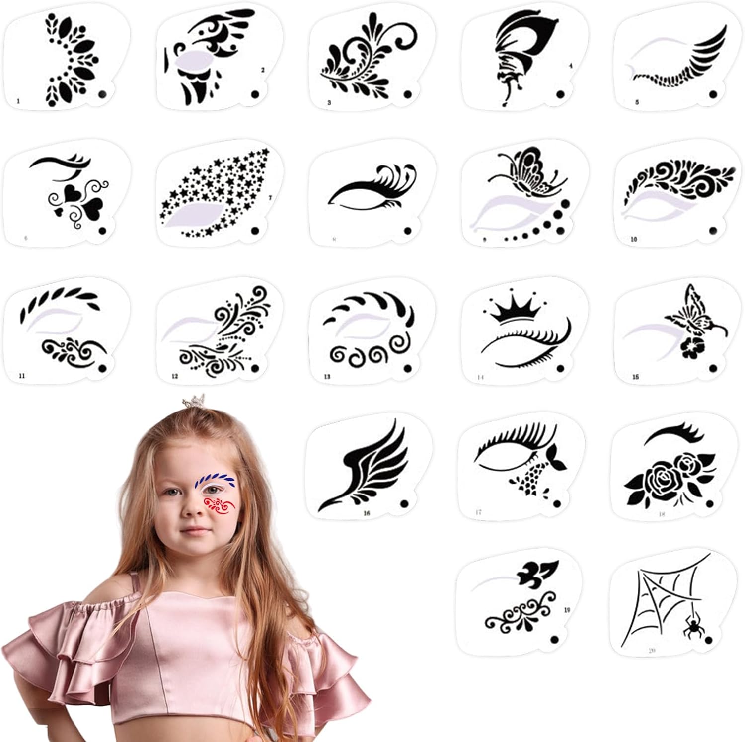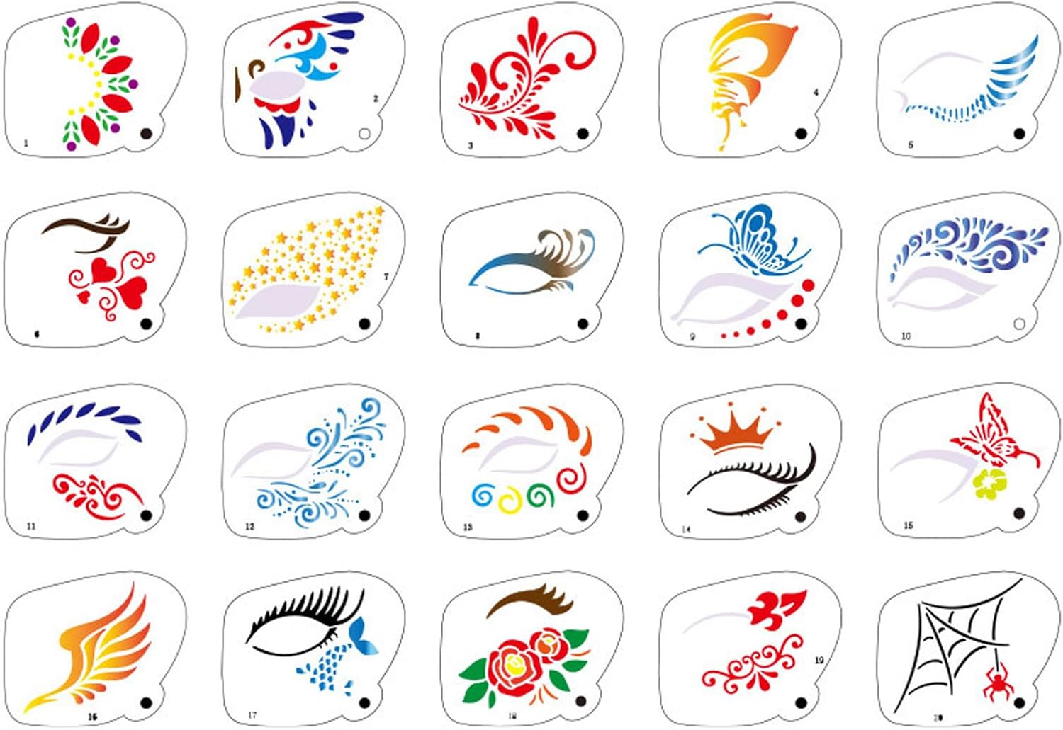 Stencil per il viso - Il kit contiene 20 gusti in diversi stili come farfalle, ragni, fiori, ecc. La quantità è sufficiente e gli stili sono diversi per soddisfare le vostre esigenze quotidiane di uso e sostituzione. 【Facile da usare】 Allineare prima il modello con la posizione che si desidera utilizzare. Quindi immergere il pettine nero nella vernice e premere delicatamente la parte cava del modello. Quindi questo trascina il modello per lasciare il bellissimo modello che desideri. Anche se sei un principiante, puoi creare un modello perfetto. 【Si adatta alla maggior parte dei volti】 I modelli per il viso dei nostri bambini sono leggeri e facili da usare, in modo da poter scegliere la dimensione giusta per dipingere il corpo del viso o altre parti, con un design perfetto, particolarmente adatto per prestazioni per la festa dei bambini, feste, Halloween -Make Up esigenze. 【Materiale affidabile】 I nostri modelli di pulizia sono realizzati in materiale per animali domestici di alta qualità con motivi chiari e vuoti, superfici lisce, parti taglienti, non graffiano il viso, non irritano, lavabili, durevoli, non facili da rompere e possono essere utilizzati per un lungo periodo di tempo. 【Applicazioni versatili】 Questo modello di pittura per il viso è adatto per feste di compleanno, festività, balli, progetti artistici per scuola o classe, Halloween, feste in maschera, Natale, festival musicali, carnevale e molte altre occasioni che possono migliorare il divertimento e la gioia.
