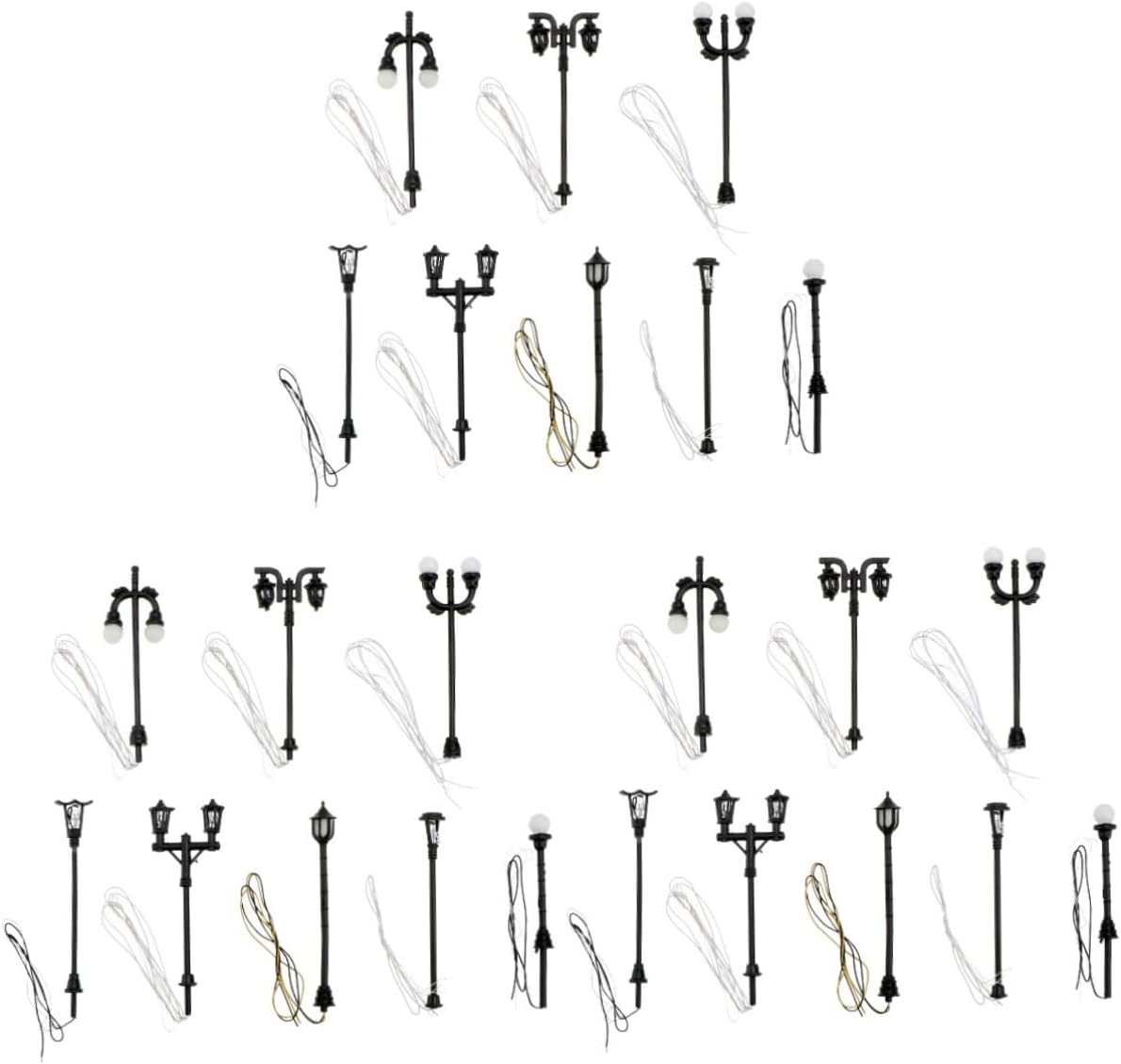 Janasiba Condizione: 100% Tensione: DC 3 V. Scala: 1:100 Altezza: circa 12 cm. Ognuno ha un doppio lampione con fili e una lampadina Utilizzato principalmente per decorare il layout del modello Colore: + Materiale: plastica + metallo. Contenuto della 20 x 1: 100 lampione in scala La confezione include solo il prodotto sopraindicato, non sono inclusi altri accessori. Nota: a causa della luminosità e degli schermi, il tono di colore delle foto potrebbe essere un po' diverso dal prodotto reale. Si prega di tollerare errori di misurazione compresi tra 1 e 3 cm.