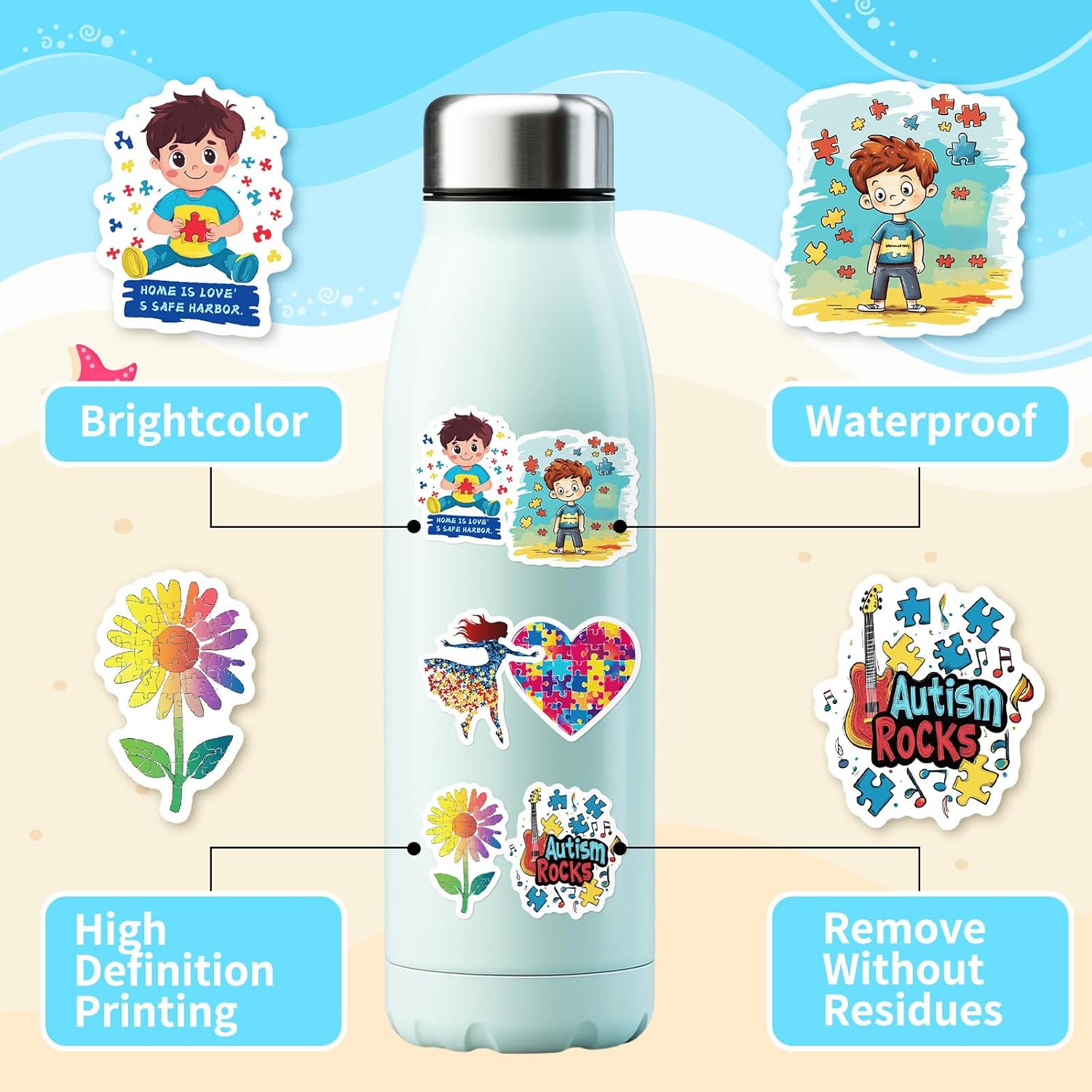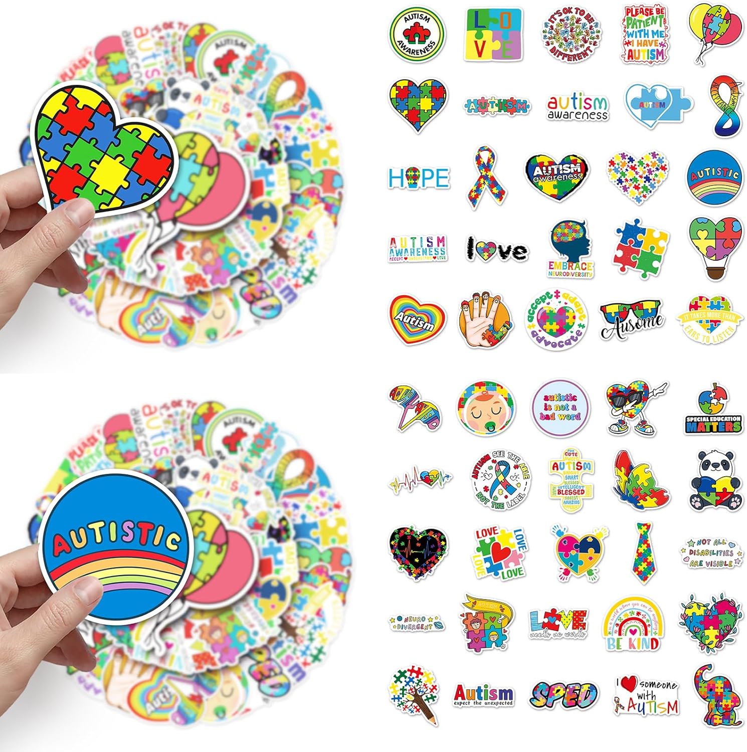 Divertenti adesivi per bottiglie d'acqua per la consapevolezza dell'autismo: riceverai 200 adesivi distinti per la consapevolezza dell'autismo, con 200 disegni non ripetibili; Grandi quantità e modelli possono soddisfare le tue diverse esigenze decorative personalizzate e puoi condividerli con la tua famiglia e i tuoi amici. Dimensioni attraenti: tutti gli adesivi estetici per la consapevolezza dell'autismo hanno dimensioni da 1" a 3", progettati per adolescenti, adulti, ragazze, adulti. Adesivi sagomati, facili da staccare e incollare, per un'esperienza di utilizzo piacevole. Qualità Premium: questi divertenti adesivi a tema autismo sono realizzati in vinile, affidabili e impermeabili, con buona adesione, non facili da staccare, adatti a qualsiasi superficie pulita e liscia. Usi multipli: questi adorabili adesivi per la consapevolezza dell'autismo per bambini e bambine sono molto carini, adatti per bottiglie d'acqua, laptop, telefoni, valigie, skateboard, motociclette, automobili, album, frigoriferi, chitarre, paraurti e altro ancora, rendono le tue cose più attraenti e adorabili. Regali per la consapevolezza dell'autismo: gli adesivi per la consapevolezza dell'autismo non sono solo perfetti per la promozione della campagna, ma anche una scelta regalo ideale. Che siano regalati ad amici, familiari o colleghi, gli adesivi sull'autismo trasmetteranno la tua preoccupazione e il tuo sostegno alle persone autistiche. Questi adesivi per auto per la consapevolezza dell'autismo possono promuovere la comprensione dell'autismo e ispirare più persone a partecipare alla diffusione del potere dell'amore e della comprensione.
