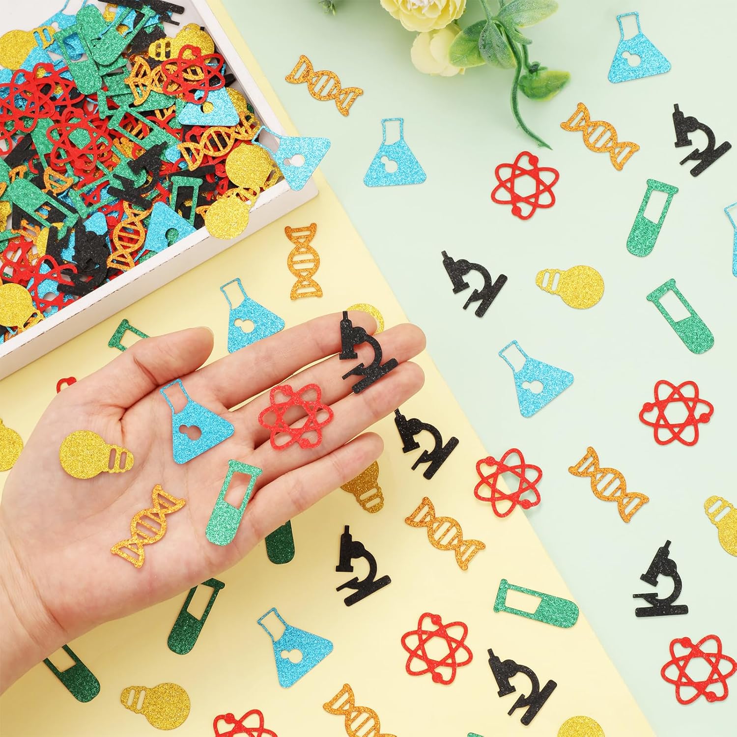 Graziose decorazioni di coriandoli per la scienza: le decorazioni di carta per la festa della scienza contengono un totale di 200 coriandoli. Decorazioni meravigliose da festeggiare, ampiamente applicabili alla festa di compleanno, anche a scuola, in classe, insegnante, matematica, chimica, baby shower, feste di rivelazione di genere e così via. Simpatiche decorazioni per la festa di compleanno: i coriandoli di carta da tavolo per feste a tema scientifico sono doppiamente stampati con motivi al microscopio, al magnete e alla medicina chimica. Potresti metterlo sul tavolo da dessert, sul tavolo dei regali o in altri posti per decorare la scena della festa, aggiungere un'atmosfera speciale e fresca alla tua festa di compleanno! Forniture per bomboniere di melma da scienziato cool e divertenti feste di compleanno: i modelli sono principalmente a tema scientifico, si adattano a colori diversi e l'intero stile è molto bello, adatto a ragazzi e ragazze di 5, 6, 7, 8, 9, 10 11, 12, 13, 14, 15, 16 anni per celebrare una speciale festa di compleanno a tema scienziato. Vari usi: i coriandoli di carta da tavolo per le feste possono essere posizionati sul tavolo da regalo o da dessert o utilizzati come strumento fotografico, quindi puoi raccogliere questi coriandoli da tavolo o usarli come parte dello sfondo della cabina fotografica per scattare foto con i tuoi amici o familiari e pubblicarli su piattaforme social. Materiale di alta qualità: i coriandoli a tema scientifico sono realizzati in resistente carta glitterata fronte-retro, è di ottima qualità, non facile da piegare.