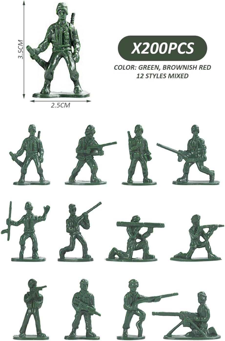 [Contenuto del prodotto] Riceverai 200 mini soldati giocattolo, ogni soldato è alto circa 3,5 cm e i colori includono verde e rosso marrone. È adatto per giochi di addestramento militare e giochi di ruolo per ragazzi e bambini. [Materiale del prodotto] Questo prodotto è realizzato in plastica, che è leggero e resistente, non facile da rompere, sicuro ed ecologico, adatto per i bambini a giocare. Il materiale plastico è resistente e adatto per un uso a lungo termine. [Forme diverse] Questo set di soldati giocattolo contiene 12 diverse pose e forme, ognuna delle quali è realistica, che può stimolare l'immaginazione e la creatività dei bambini e simulare diverse scene di addestramento e combattimento militari. [Istruzione e intrattenimento] Questo prodotto non è solo un giocattolo, ma anche uno strumento educativo per aiutare i bambini a comprendere le conoscenze militari, promuovere lo spirito di squadra e le capacità di pensiero strategico e aumentare il divertimento. [Ampiamente usato] Questo prodotto è adatto per famiglie, scuole e luoghi di intrattenimento per bambini. Può essere utilizzato da solo o in combinazione con altri giocattoli.