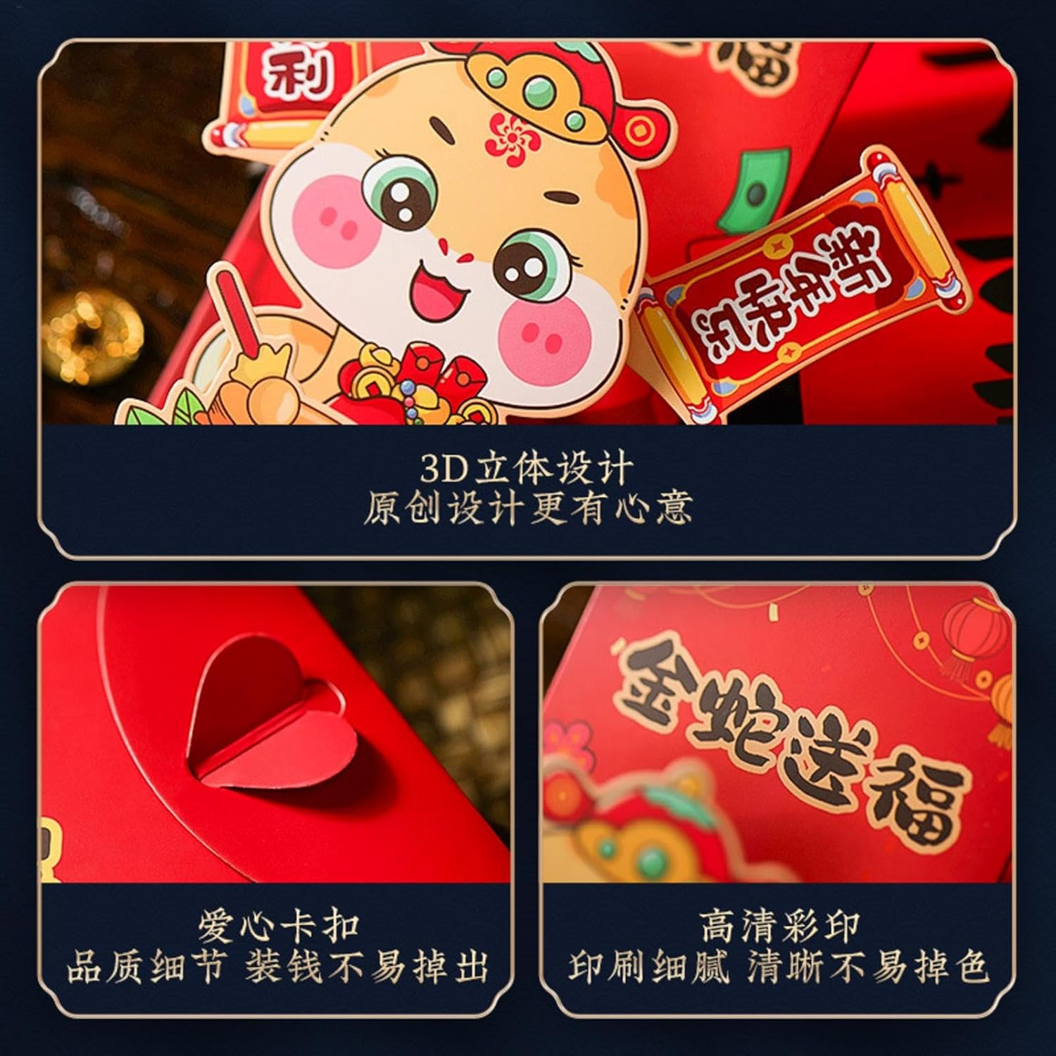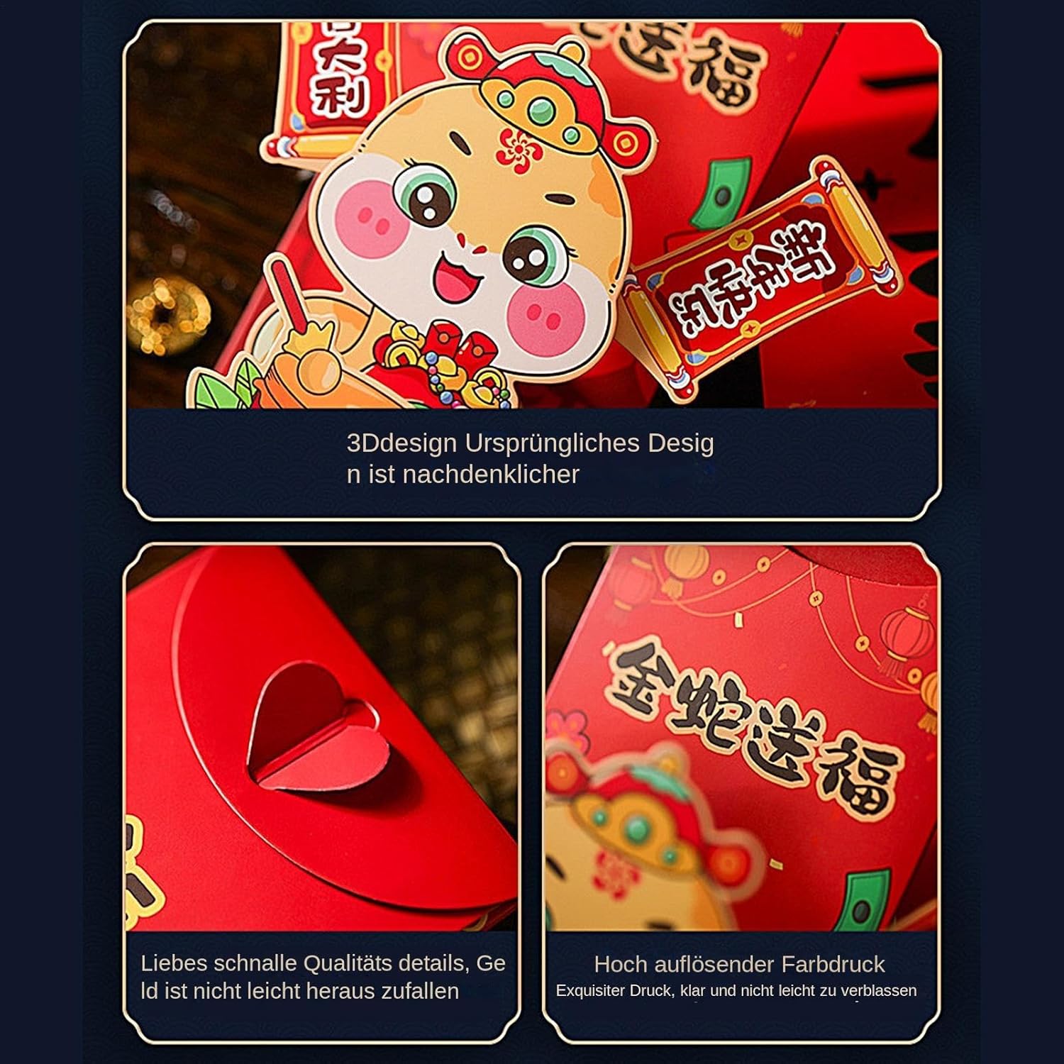 Fascino festivo incarnato: abbraccia lo spirito di rinascita e prosperità con le nostre buste rosse dell'anno cinese 2025, progettate con il serpente come tema e trasmettono le benedizioni dell'anno con il colore rosso di buon auspicio Piacere di forma unica: decorate con un design stereoscopico a serpente, queste buste rosse per l'anno cinese sono un modo divertente per conservare e presentare contanti. La forma unica dona un tocco di sorpresa, rende felici i tuoi amici e allo stesso tempo attira l'attenzione di tutti gli spettatori Celebrate la tradizione in modo squisito: le nostre buste rosse per l'anno cinese celebrano la tradizione in modo squisito, grazie ai colori belli e ricchi che non si strappano o si arricciano facilmente. Realizzate in carta resistente, queste buste durano a lungo e non cadono facilmente, in modo che le vostre benedizioni vengano trasmesse con eleganza duratura Multiuso: le nostre buste rosse per l'anno cinese 2025 Snake sono caratterizzate da un design versatile e sono perfette per riporre in modo sicuro soldi fortuna, monete, contanti o altri piccoli oggetti. Regala felicità e prosperità ai tuoi cari inserendoli in queste buste di buon auspicio Fascino infantile: delizia la persona amata con queste buste rosse dell'anno cinese decorate con adorabili illustrazioni di serpente. I dettagli intricati e i motivi affascinanti li rendono adatti a persone di tutte le età da godersi durante le festività