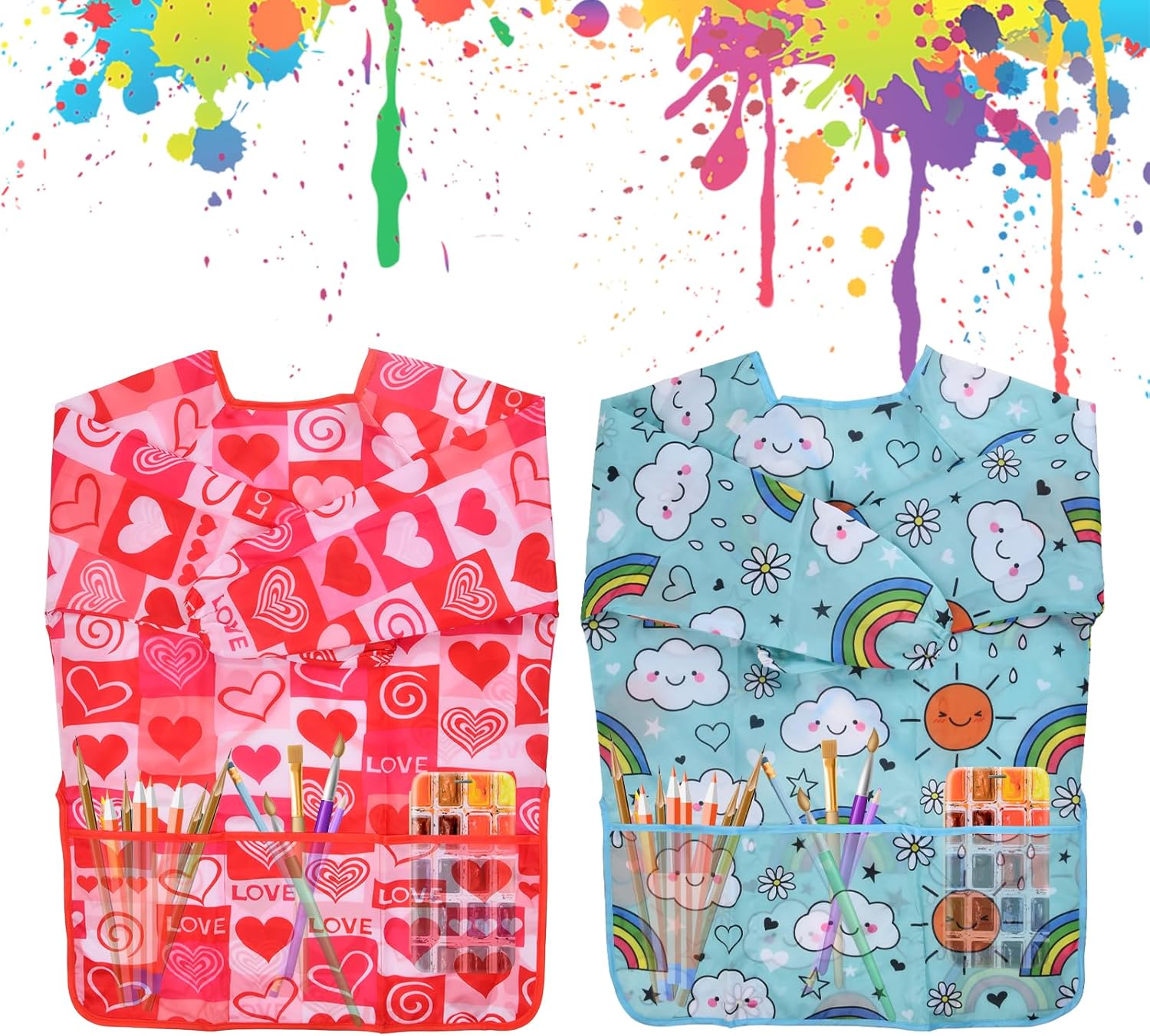 2025 Grembiule per bambini artistico con tasca per bambini, grembiuli da pittura artistici, camice a maniche lunghe T-shirt bianche per bambini Grembiule artistico per bambini con tasca per bambini, grembiuli artistici, grembiuli a maniche lunghe. Materiale: poliestere