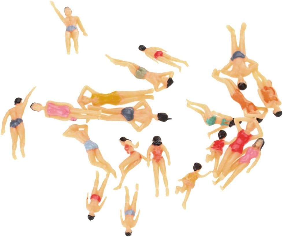 Confezione da 20 figure da spiaggia modello maschile e femminile in posa in piedi e seduti Dipinto e pronto per essere messo in posizione Perfetto per layout e modelli paesaggistici Scala 1:150 Altezza: circa 6-11 mm
