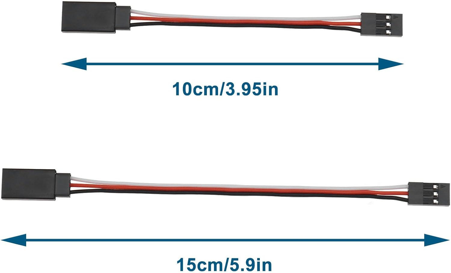 Prolunghe per servo: 20 prolunghe da servo maschio a femmina a 3 pin da 15 cm e 10 cm in un set saranno vendute insieme. ogni dimensione da 10 pezzi Materiale: il materiale di contatto è rame puro, garantendo una connessione salda ogni volta, che può garantire un uso di lunga durata. Cavo di prolunga a 3 pin: il cavo di prolunga da femmina a maschio è un connettore stile a 3 pin, con connettore femmina su un lato e connettore maschio dall'altro lato, può essere collegato al gruppo di ricezione e al motore di sterzo. Ampia applicazione: Le prolunghe del servo possono essere Compatibile con Futaba e Compatibile con Servo JR, il servocollegamento dell'aereo e dell'elicottero o il collegamento del ricevitore, l'automobile telecomandata, l'automobile RC.