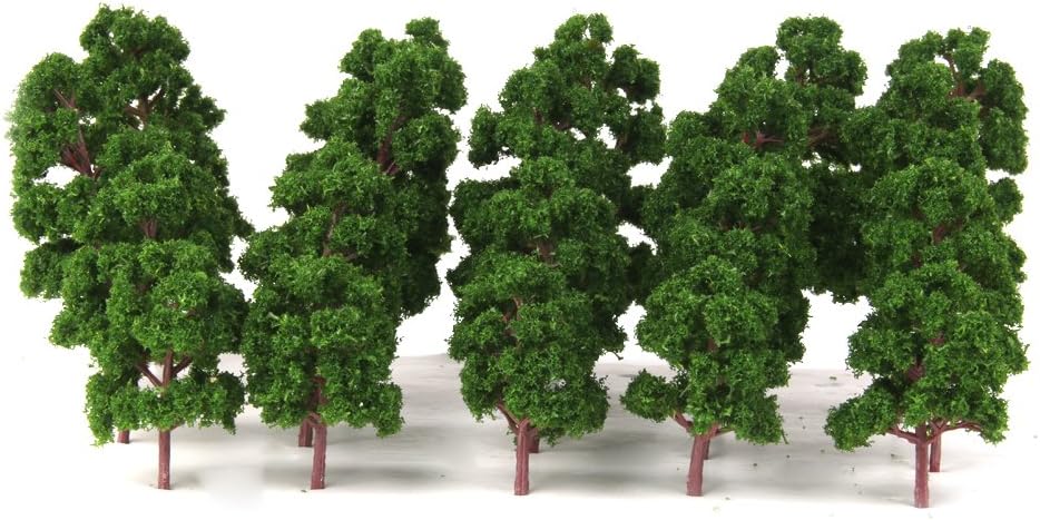 Colore : Verde Profondo Calibro: 1: 75, 1: 100, 1: 150, 1: 200 Quantità: 20 pezzi Scala: per HO N Z gauge ( La classe HO standard è 1 : 87 ; la classe N standard è 1 : 160. La classe Z standard è 1 : 220 , 1 : 75 - 1 : 200 è tra la classe HO e N classe.) Materiale: plastica