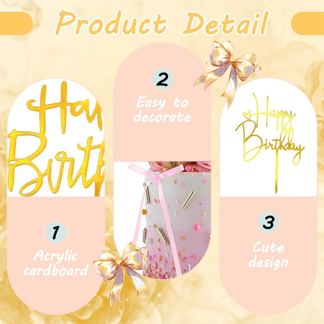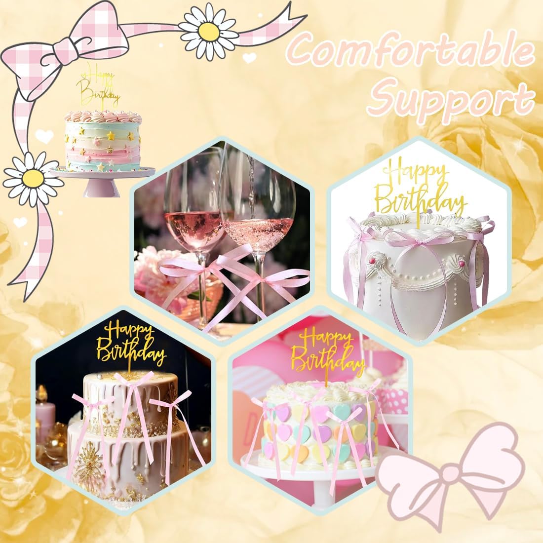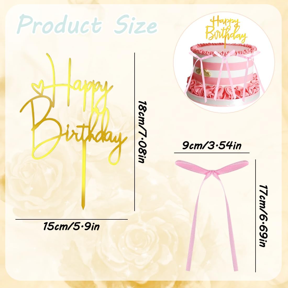 Decorazioni per Torte a Fiocco: Riceverai 20 pezzi di morbidi fiocchi per cupcake, e 1 pezzo 'Happy Birthday' Cake Topper per decorare torte di diverse dimensioni, forme e dimensioni adatte a te. Ideali come articoli per feste a tema fiocco per ragazzi e ragazze, adatti come decorazioni per torte per la maggior parte dei cupcake di compleanno e delle torte nuziali Materiale di Alta Qualità: La decorazione per torta rosa con fiocco è realizzata in nastro di alta qualità, morbido e liscio, in colori brillanti, non facile da deformare e sbiadire, forte effetto decorativo Decorazione Squisita: I fiocchi sono semplici e belli, facili da decorare e aggiungono un tocco di raffinatezza alla torta Design Accattivante e Vivido: Decorazioni per torte con fiocchi, che possono essere facilmente inserite nelle torte per esaltare i tuoi dolcetti in modo visivamente accattivante. Possono anche essere facilmente conservate e riutilizzate per il prossimo utilizzo senza preoccuparsi che si ribaltino o cadano Servizio: Se avete domande , non esitate a contattarci in qualsiasi momento. Risponderemo entro 24 ore