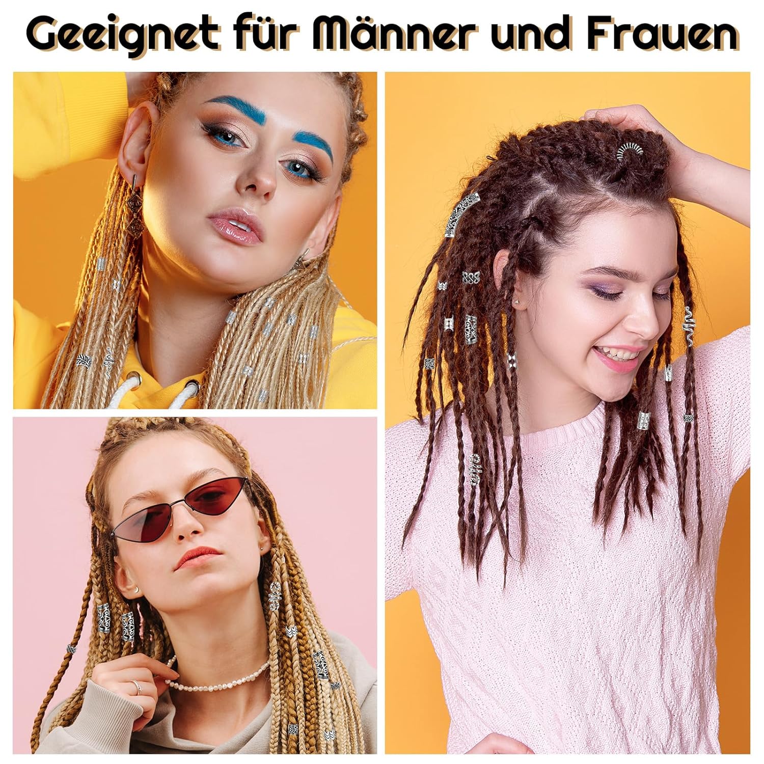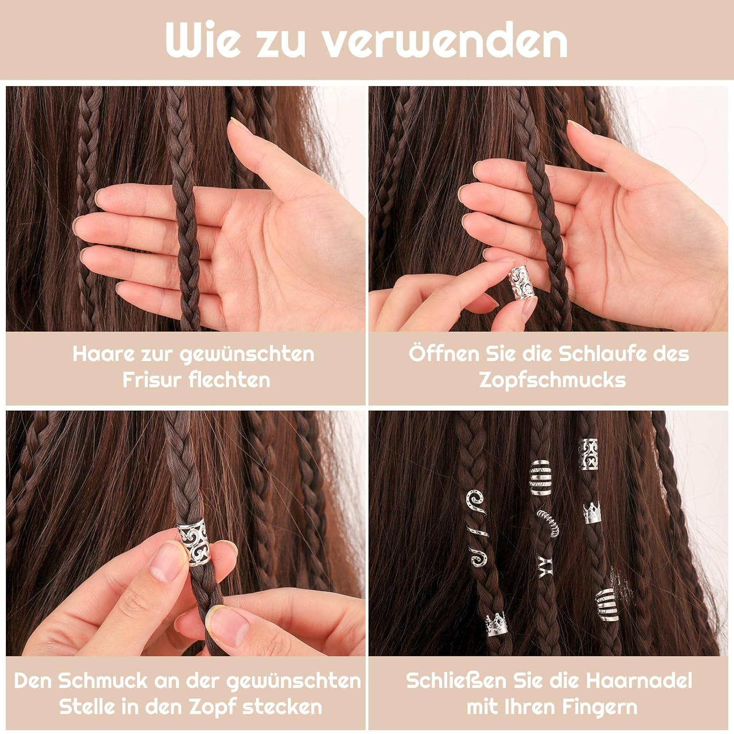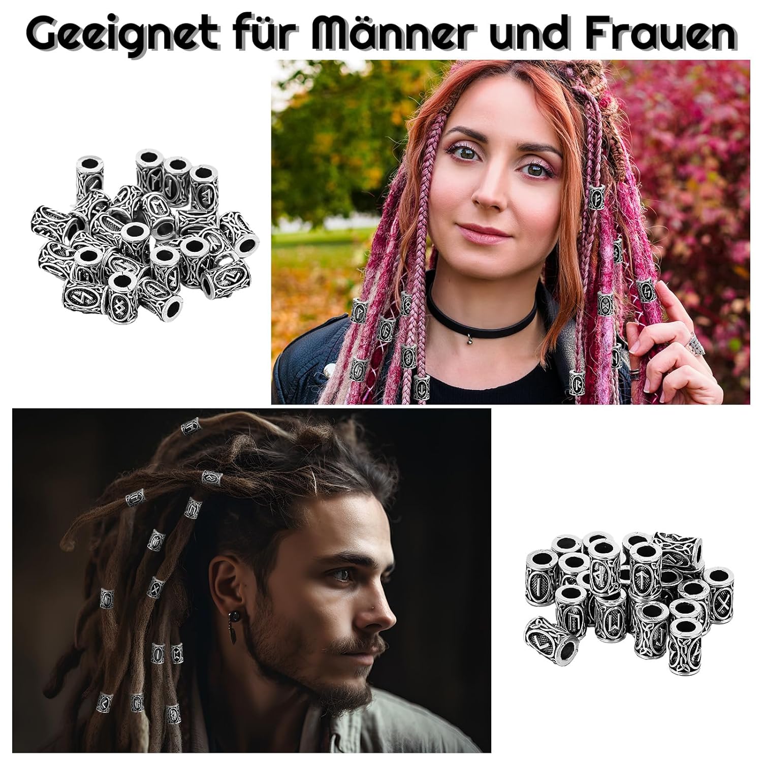【Incluso】Riceverai 107 pezzi di accessori per capelli in argento, 100 elastici, 2 infila capelli, confezionati in una scatola trasparente per riporli in modo comodo e veloce. Progettato per un design brillante, classico e bello, questo accessorio per capelli color oro si abbina bene con extension e trecce per capelli, donandoti il look chic perfetto. 【Materiale】 Questo accessorio per capelli color argento è più resistente dei normali pezzi in alluminio. I gioielli intrecciati sono realizzati con materiali in lega di alta qualità e tecnologia galvanica. Dopo la galvanizzazione ha una buona duttilità e durezza, non arrugginisce, non sbiadisce, è morbido ed elastico e non danneggia i capelli. Le perle per capelli nordici presentano una superficie in metallo bronzato su ciascun lato e un simbolo nordico al centro per un 【Facile da usare】 Gli accessori per capelli color argento possono essere attaccati a trecce di diversi spessori e stili. Basta intrecciare i capelli nello stile desiderato, quindi aprire gli accessori per capelli argento, posizionarli nella posizione desiderata sulla treccia o sulla barba e premerli completamente e saldamente.,Design regolabile: gli accessori per capelli argento hanno una buona flessibilità ed estensibilità ed sono regolabili. Puoi controllare la tenuta secondo necessità per soddisfare le tue diverse esigenze di accessori per capelli.,Ampia applicazione: puoi utilizzare perline per capelli Viking per trecce, barbe, code di cavallo, trecce e altri stili, alla moda e alla moda. Può essere utilizzato per l'uso quotidiano e in varie occasioni come feste, sfilate di moda, concerti, balli, ecc. È adatto anche come regalo per amanti, famiglia, amici e colleghi