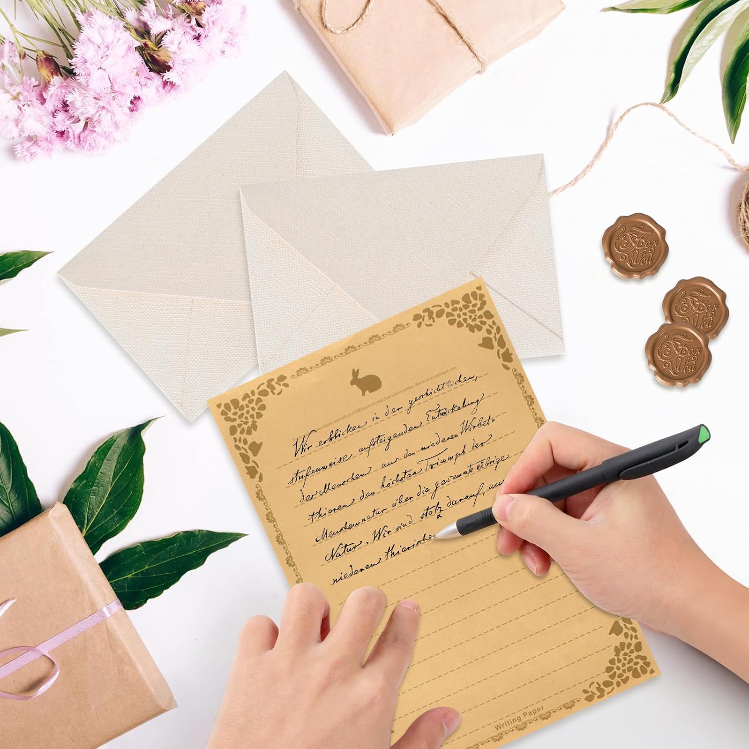 【Materiali di alta qualità】 Le buste sono realizzate in lino di alta qualità, più robusto e durevole delle buste convenzionali, confortevole al tatto e con una texture unica. La carta da lettere è realizzata in carta kraft di alta qualità, spessa, resistente all'usura e allo sbiadimento, e consente una scrittura fluida senza sbavature di inchiostro. 【Design classico vintage】 La busta presenta una texture in lino di alta qualità, che trasmette un senso di qualità. Abbinala a raffinati adesivi con sigillo in ceralacca per aggiungere un'atmosfera elegante e rilassata ai tuoi inviti, rendendo la tua lettera più accattivante. 【La confezione include】Set di 22 carta da lettere e buste, inclusi 10 fogli di carta da lettere a righe monofacciali, 6 buste vintage e 6 adesivi con sigillo in ceralacca. I colori delle buste sono rosso scuro e bianco. Quantità sufficiente per soddisfare le tue diverse esigenze. 【Dimensioni adatte】Ogni carta da lettere A5 misura circa 21 x 14,8 cm/8,27 x 5,82 pollici, la busta vintage misura circa 16,5 x 11 cm/6,5 x 4,33 pollici e 6 adesivi con sigillo in ceralacca di circa 3 cm/1,2 pollici di diametro. 【Ampia applicazione】Il set di carta da lettere e buste vintage è adatto per scrivere lettere, lettere d'amore, biglietti d'auguri, inviti di nozze, inviti per feste, messaggi di benedizione, lettere di festa, ecc. È la scelta ideale per San Valentino, compleanni, matrimoni, lauree e regali e soddisfa le tue diverse esigenze di utilizzo.
