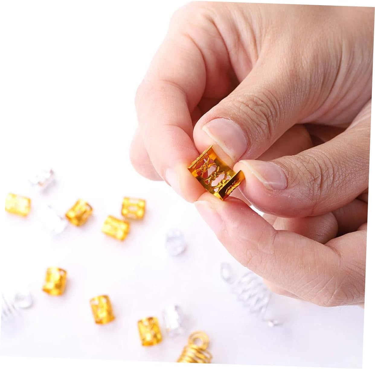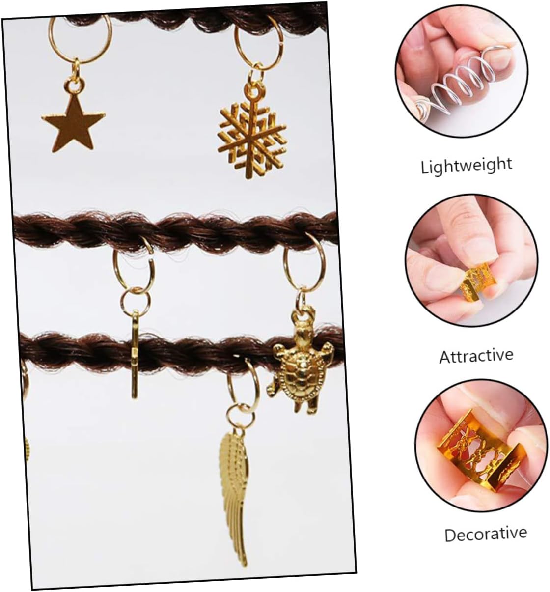 Copricapo alla moda: il design dai colori vivaci ti fa sembrare più attivo e affascinante. Polsini in metallo per trecce: con loro riceverai molti complimenti dagli spettatori a un festival o una festa. Accessori per capelli - Le forcine sono adatte a diverse acconciature, versatili e pratiche. Anelli per capelli: hanno un aspetto diverso e sono molto divertenti da abbinare al tuo stile di abbigliamento. Copricapo creativo: adatto per feste, sfilate di moda, foto, balli di fine anno, un'ampia quantità può soddisfare le diverse esigenze.