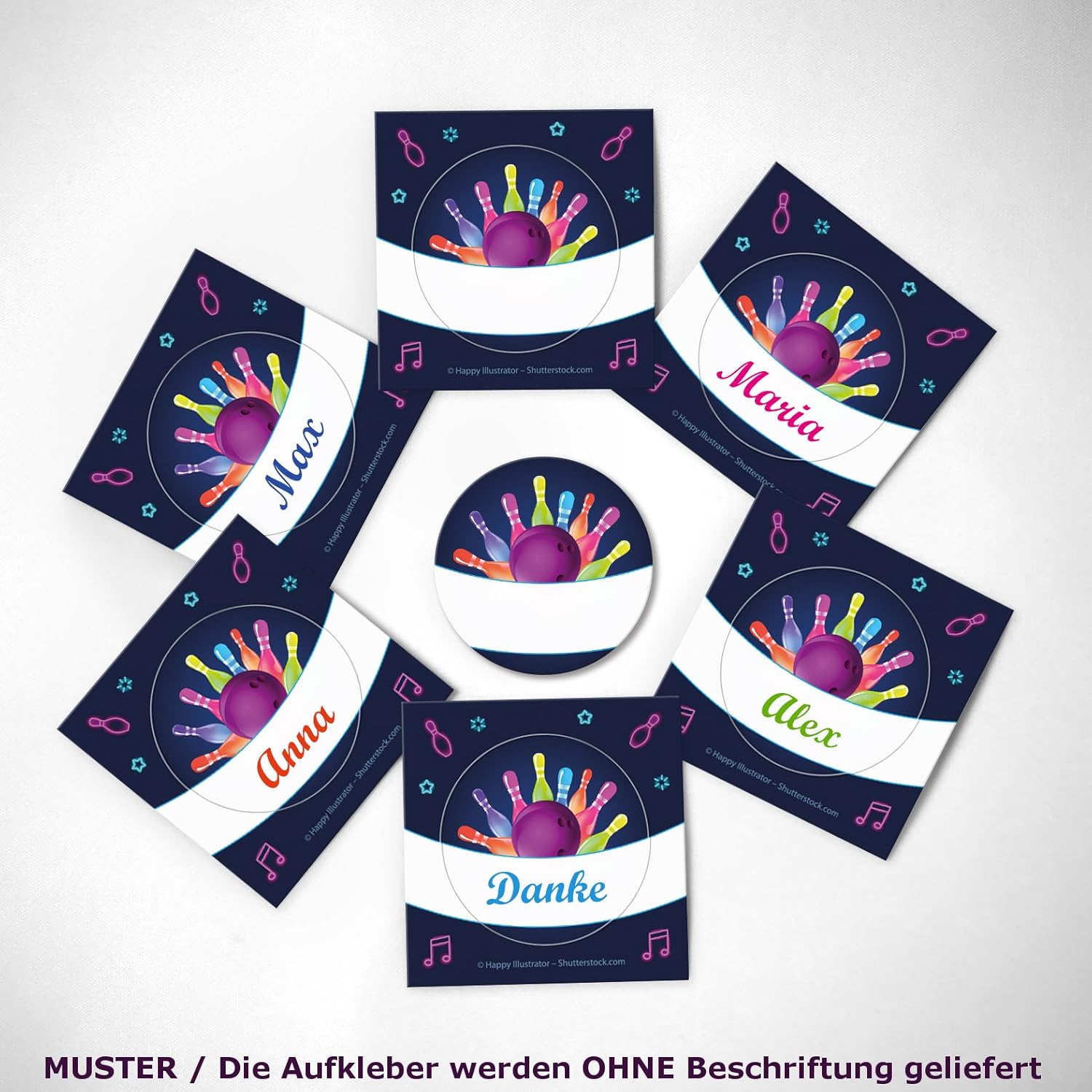 MOTIVO: 24 adesivi "Bowling / neon". Gli adesivi vengono consegnati SENZA nome o “Grazie”. PRATICO: Gli adesivi misurano 4,00 cm/rotondo (80 g/m2) e sono pretagliati sul materiale di supporto (5,2 cm x 5,2 cm). Basta staccare e attaccare sulla confezione. OCCASIONE: Gli adesivi sono molto adatti per confezionare regali in occasione di compleanni/compleanni o feste per bambini. PRODUZIONE PROPRIA E QUALITÀ: Gli adesivi sono stati prodotti in una tipografia tedesca. Aderiscono bene e non sbavano. ALTRI MOTIVI E PRODOTTI: Da noi troverete adesivi con molti altri motivi oltre a questi adesivi con sacchetti di carta/sacchetti di carta kraft in un set.