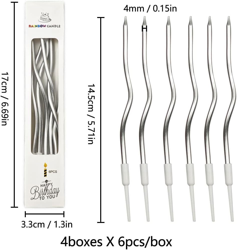 【Dimensioni Delle Candele a Spirale】24 pezzi Candele Compleanno Lunga E Sottile con superficie metallica , La lunghezza totale è di circa 14.5cm . 【Candele Sottili Sicure】Queste candele a spirale sono realizzate in materiale di cera, inodore e sicuro da usare, con una lunghezza adeguata e colori brillanti, buoni accessori per portare luce calda e rendere la tua festa più interessante. 【Design Sofisticato E Colorato】Candeline lunghe compleanno sottili look elegante e raffinato, sembra che molte fate stanno ballando sulla torta, facile da creare un'atmosfera romantica; i supporti in plastica aiutano a evitare di rompere la bella superficie della torta . 【Ampia Applicazione】Le nostre alte candele della torta di compleanno sono grandi ornamenti per le vostre torte, adatti per compleanno, baby shower, matrimonio, Natale, San Valentino, celebrazione del festival e qualsiasi altra occasione speciale. Le candele forniranno un effetto elegante e un'atmosfera romantica alla vostra festa. 【Servizio Clienti】Faremo del nostro meglio per fornirvi un servizio eccellente. Se avete domande prima o dopo l'acquisto, non esitate a contattarci. Vi daremo una risposta soddisfacente entro 24 ore.