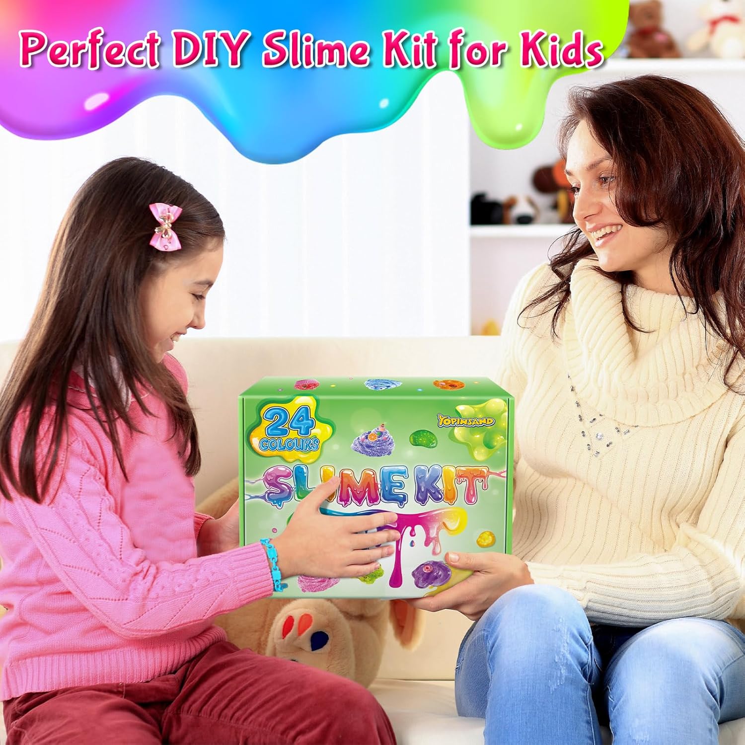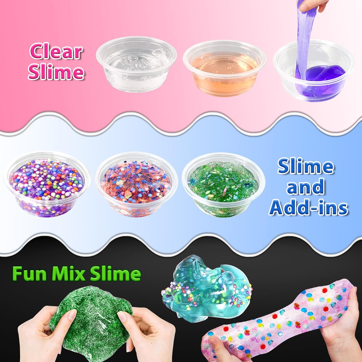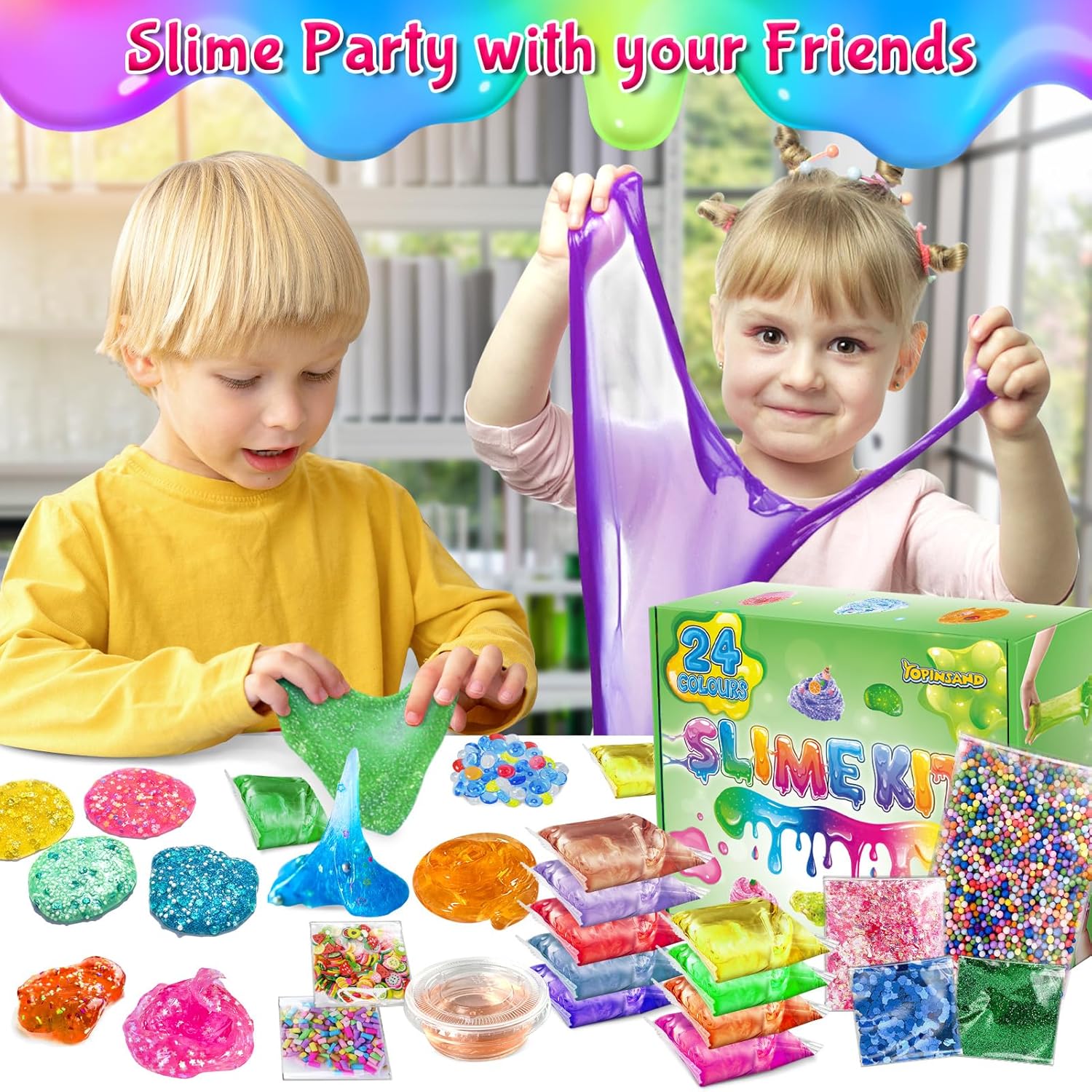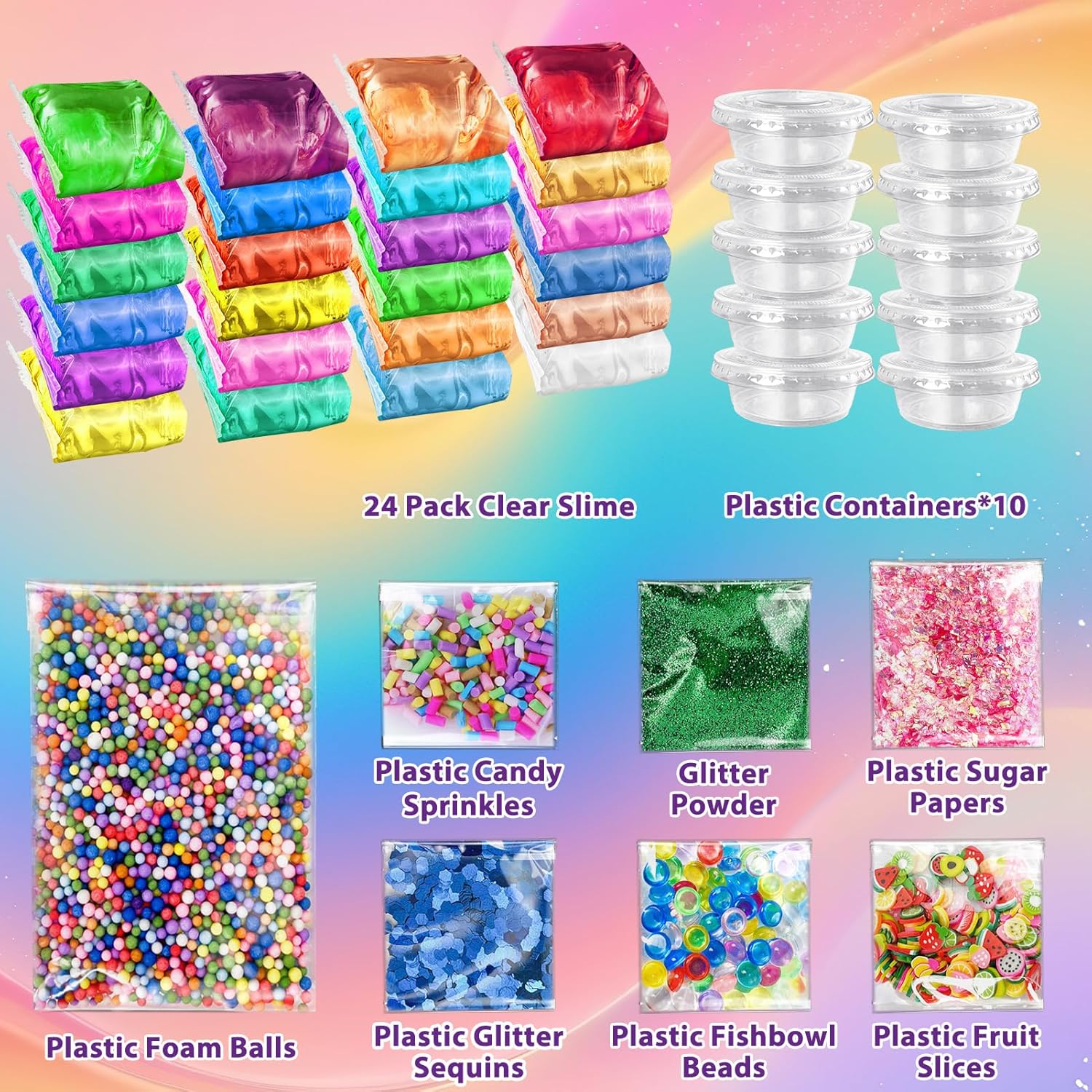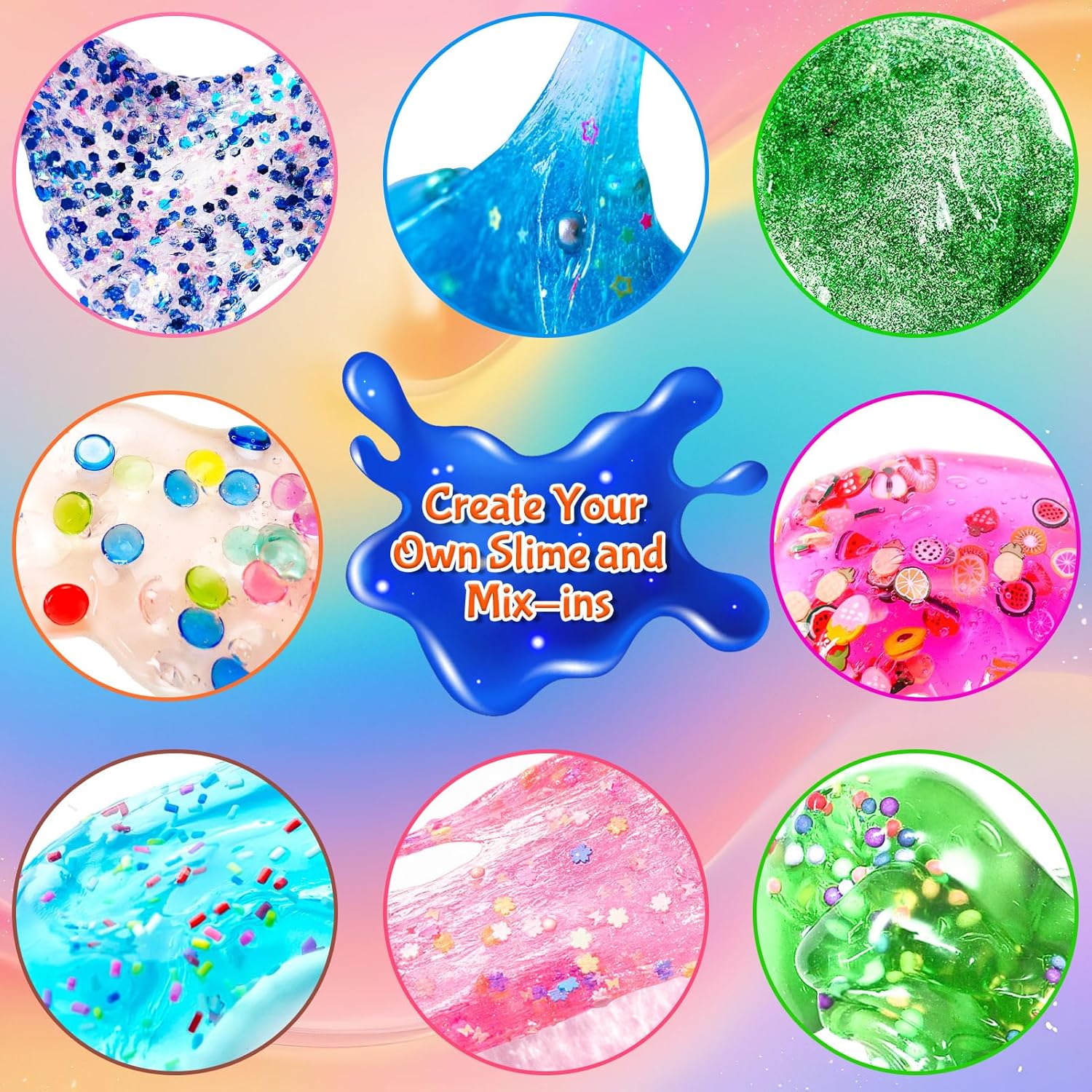 TUTTO IN UN KIT SMICO: il kit fai da te Slime contiene 24 melme di cristallo di diversi colori e 1 confezione di caramelle, palline di schiuma, carte di caramelle, fette di frutta, polvere glitterata, 10 contenitori e glitter. Ci sono così tanti accessori per rendere il gioco Slime ancora più divertente! Crea la tua melma personalizzata: il nostro set di slime porterà divertimento infinito ai bambini, diversi colori di slime di cristallo possono essere mescolati e abbinati con additivi, dando libero sfogo alla creatività e all'immaginazione dei bambini. Non appiccicoso e sorprendente consistenza: super morbido, elastico, non appiccicoso e non appiccicoso alle mani, sempre per mantenere le mani pulite e perfetto da riutilizzare e tenere con i contenitori. Favori e regali perfetti per feste Slime: adatto per una varietà di occasioni, per dare regali e premi ai bambini, come regali di compleanno, regali di Pasqua, cestino pasquale, regali di Natale e premi in classe. Non raccomandato per bambini sotto i 3 anni e deve essere utilizzato sotto la supervisione di un adulto.