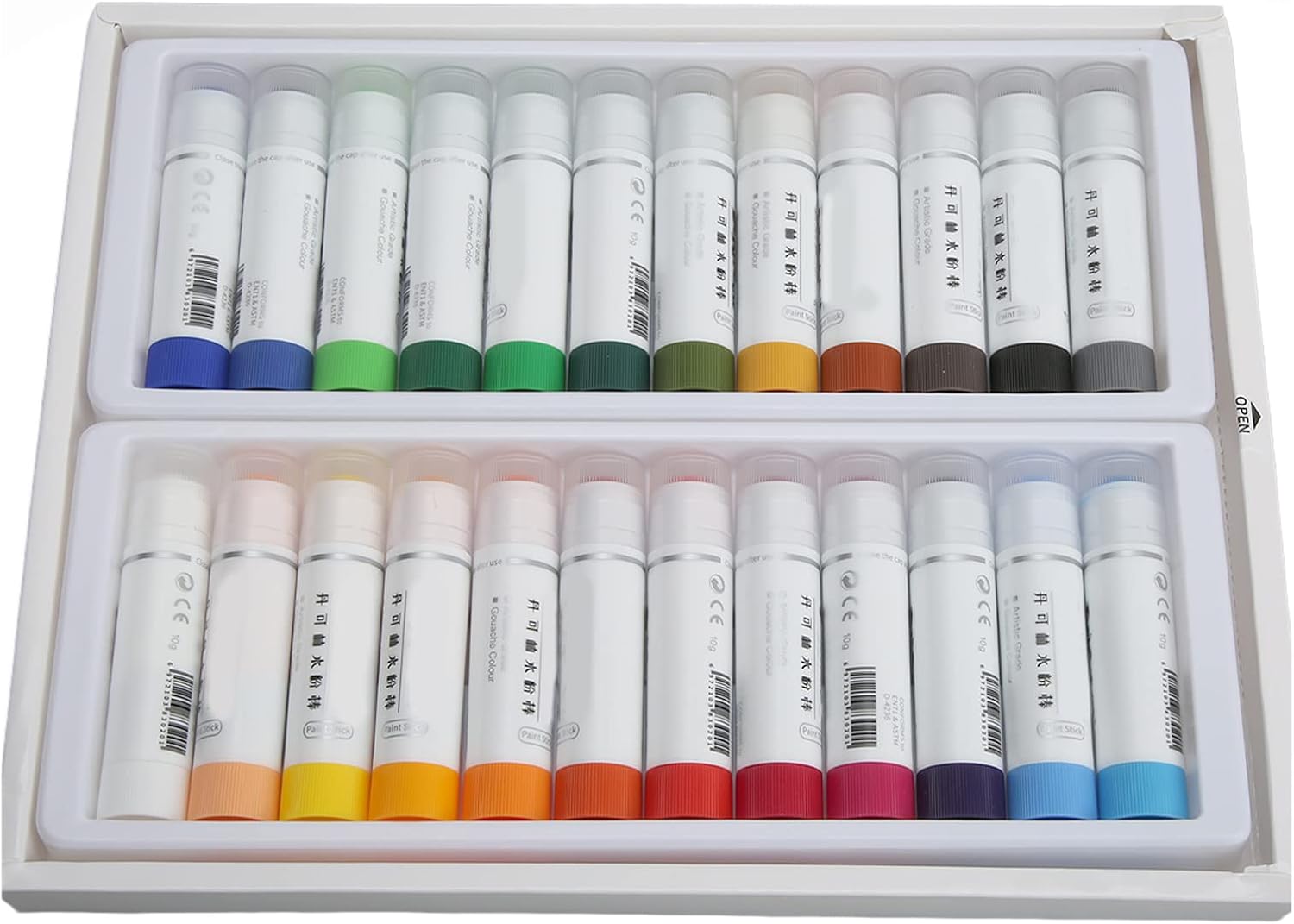 SMOOTH WRITING EXPERIENCE: The paint sticks allow you to easily draw and write with a smooth application; simply open the lid and twist to start creating without the need for water or brushes, making it great for quick and fun art projects VIBRANT COLOR SELECTION: Featuring 24 bright classic colors, these paint sticks help stimulate children's creativity in coloring; the rich variety encourages artistic expression, making each project come to life with vibrant hues that capture attention VERSATILE ART TOOL: Ideal for graffiti, dry painting, wet painting, and more, the paint sticks are suitable for various art projects at home or in school; unleash creativity during family activities, parties, or classroom lessons while exploring different styles WIDE APPLICATIONS: These paint sticks work beautifully on a range of surfaces including paper, cardboard, wood, glass, ceramics, walls, mirrors, and posters; their versatility means you can transform countless materials into artistic CONVENIENT STORAGE & GIFT IDEA: The variety of colors can be easily stored in boxes, keeping your art supplies organized; these paint sticks also make fantastic gifts for children and friends who enjoy painting, sparking their creativity with endless possibilities
