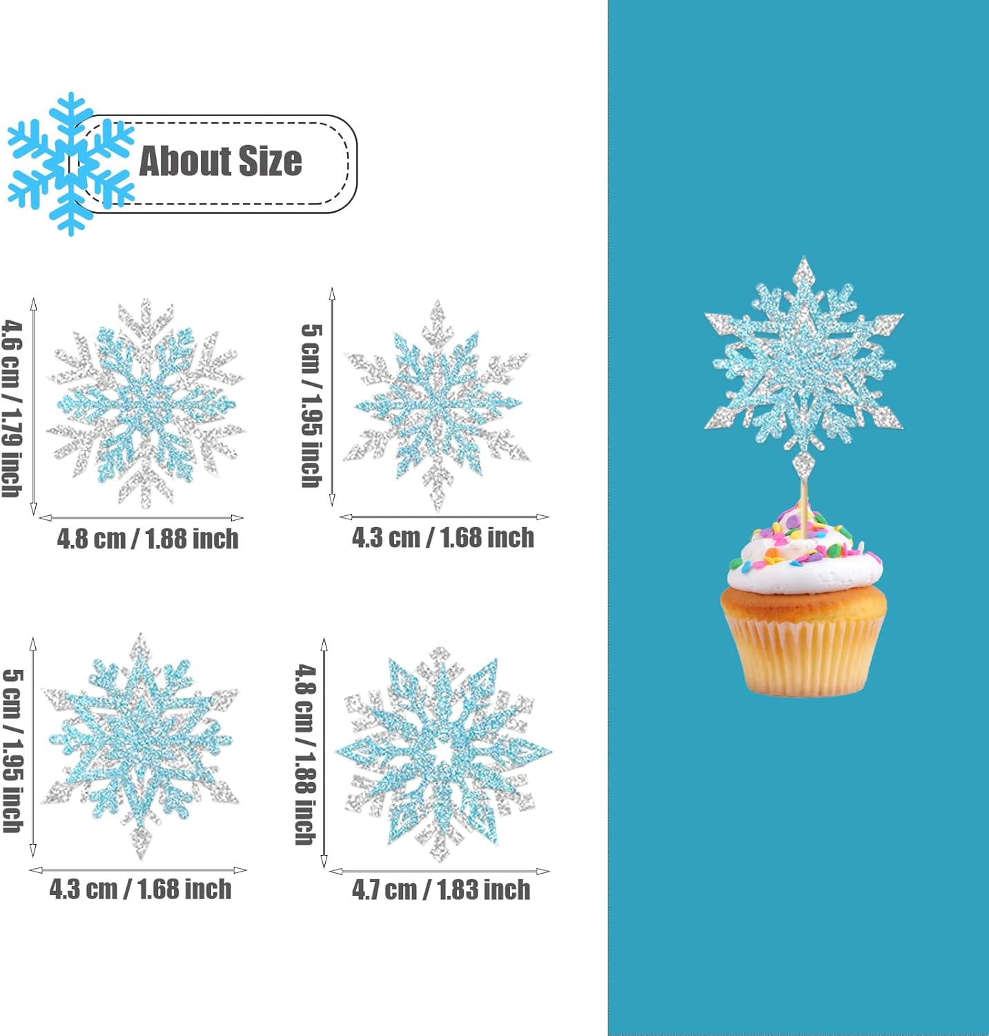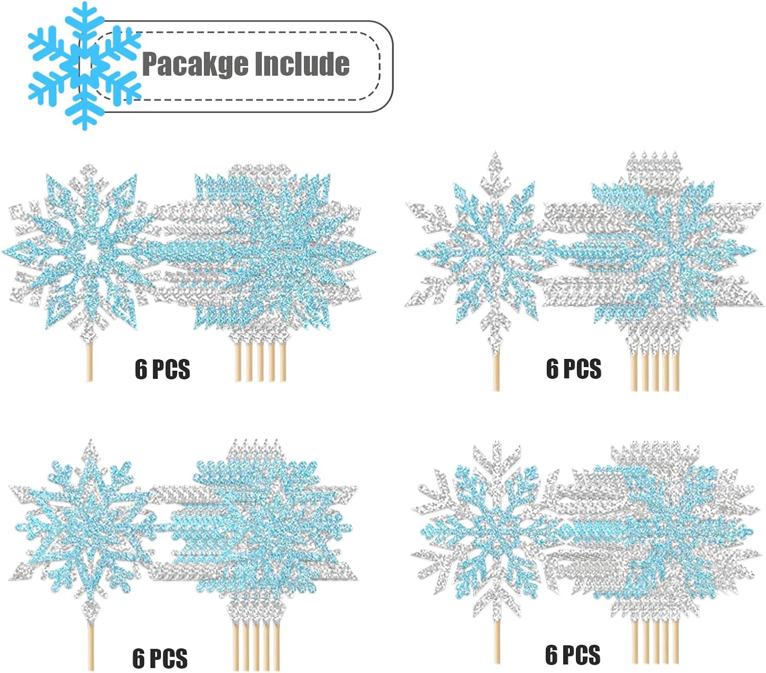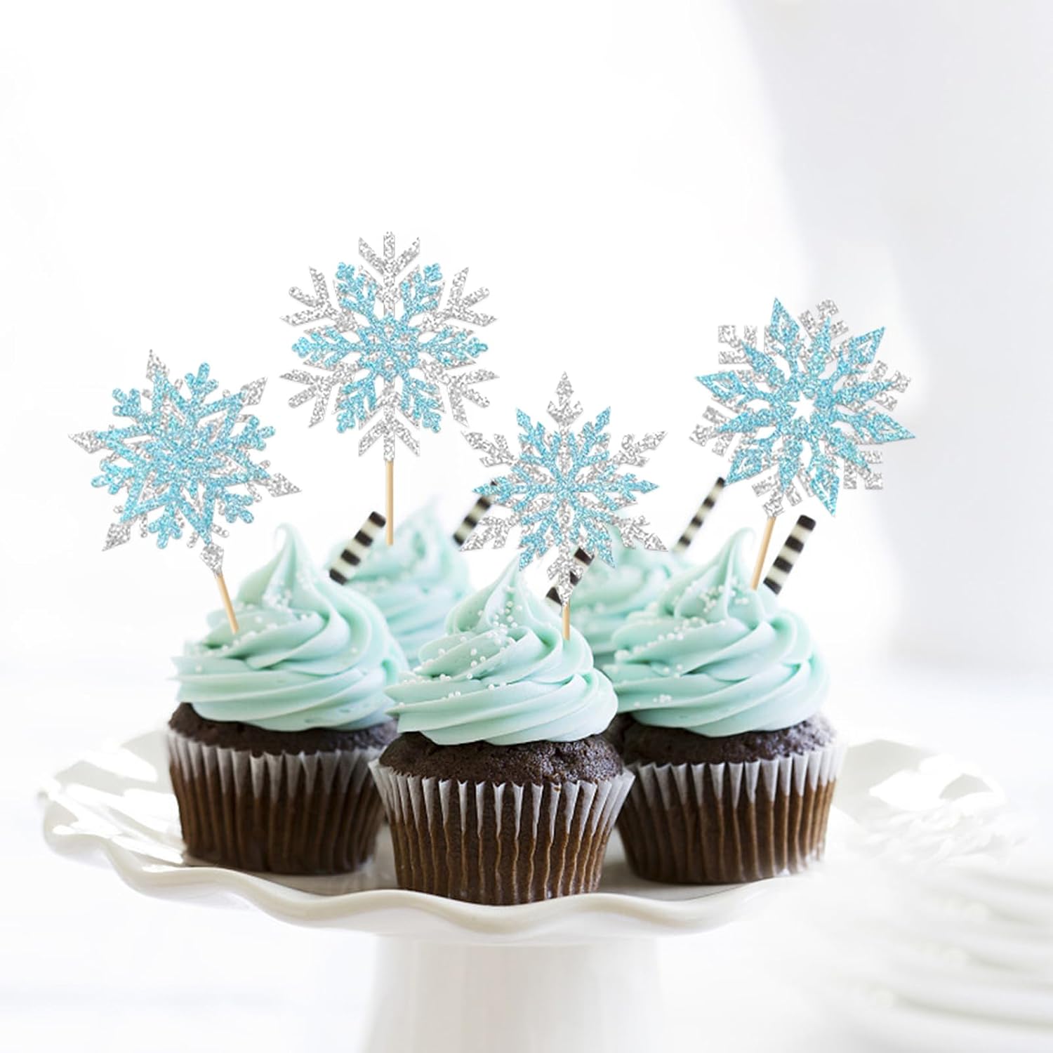 Decorazioni per cupcake a doppio strato con fiocchi di neve: 24 topper pre-assemblati per cupcake in 4 disegni, 6 pezzi per ogni motivo Cartoncino glitterato di alta qualità: realizzato con cartoncino glitterato da 300 g/m² che non si piega o sbiadisce. Presenta motivi di fiocchi di neve e bordi lisci, ideale per la decorazione di torte a tema invernale. Non richiede assemblaggio: nessun assemblaggio! Basta attaccare questi topper per cupcake prefabbricati con fiocchi di neve in cupcake o cheesecake. Risparmio di tempo per le feste. Ampia applicazione: perfetto per decorare cupcake e torte, e può anche essere utilizzato per gelati, frutta, biscotti, antipasti alimentari, dessert, topper ecc. Adatto per varie occasioni, come feste di Natale, feste di compleanno, baby shower, feste a tema Winter Frozen. Crea una meravigliosa atmosfera di festa. Promemoria: questi topper natalizi per cupcake sono stampati su un lato. Solo per uso decorativo, evitare l'esposizione al calore: non adatto per apparecchi da forno o fiamme dirette.